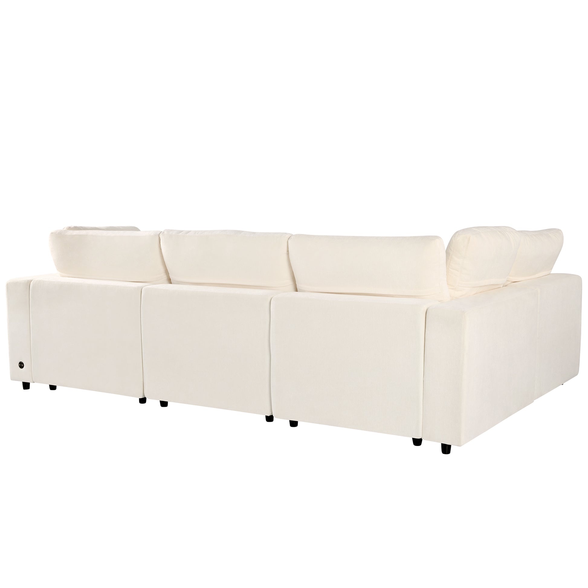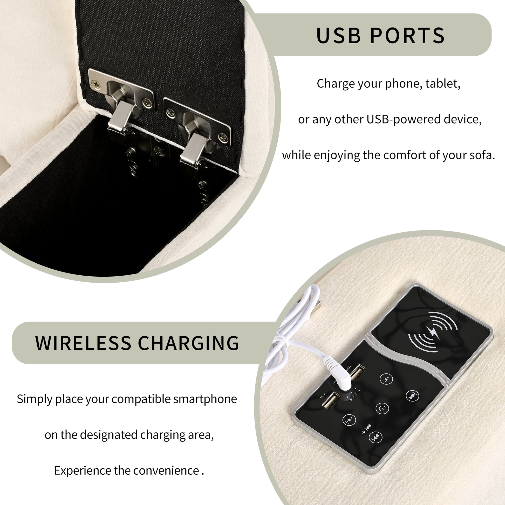 Upholstered Modular Sofa With With Storage Space, Usb Charge Ports,Wireless Charging And Built In Bluetooth Speaker In Arm,Sectional Sofa For Living Room Apartment. Old Sku:Wy000317Aaa Beige