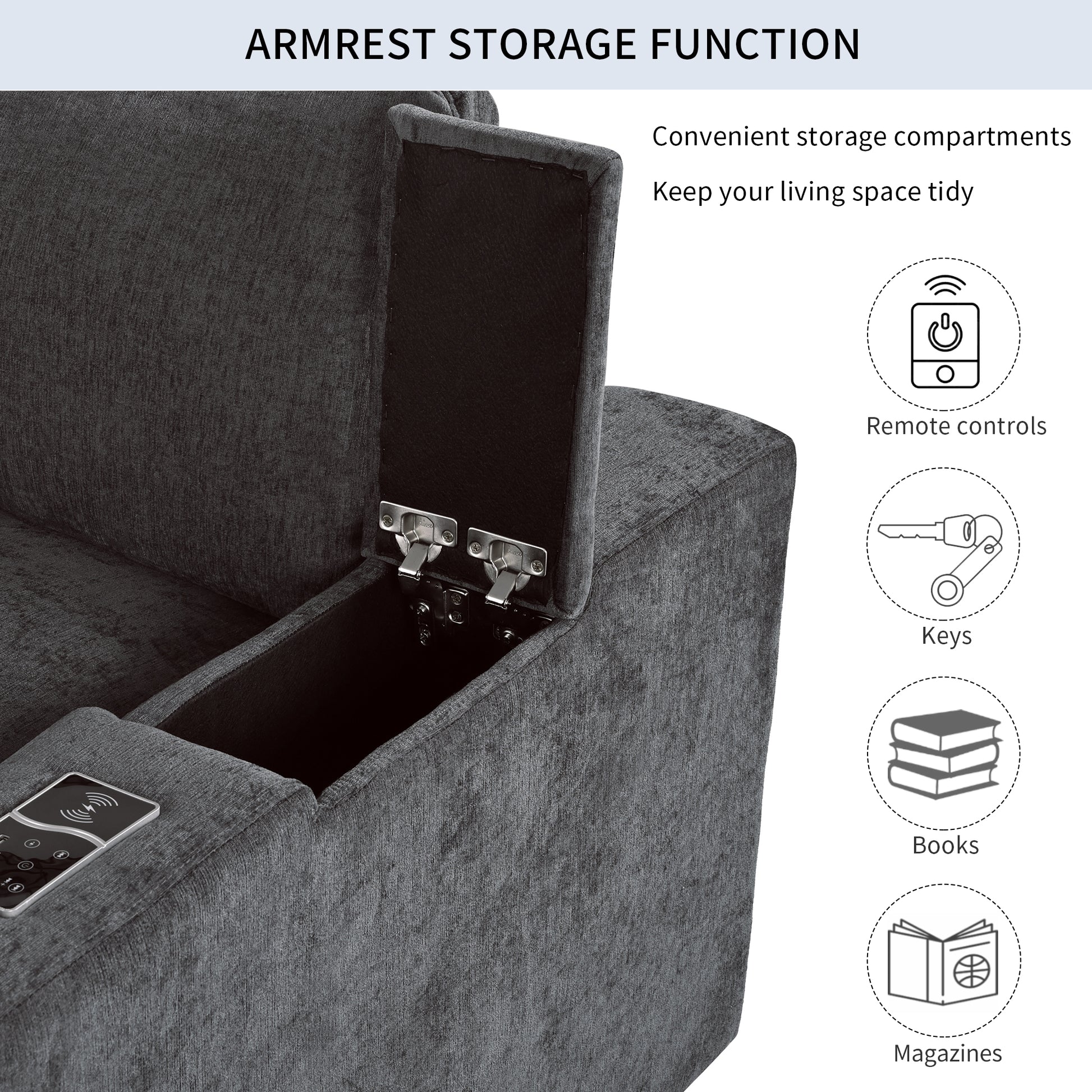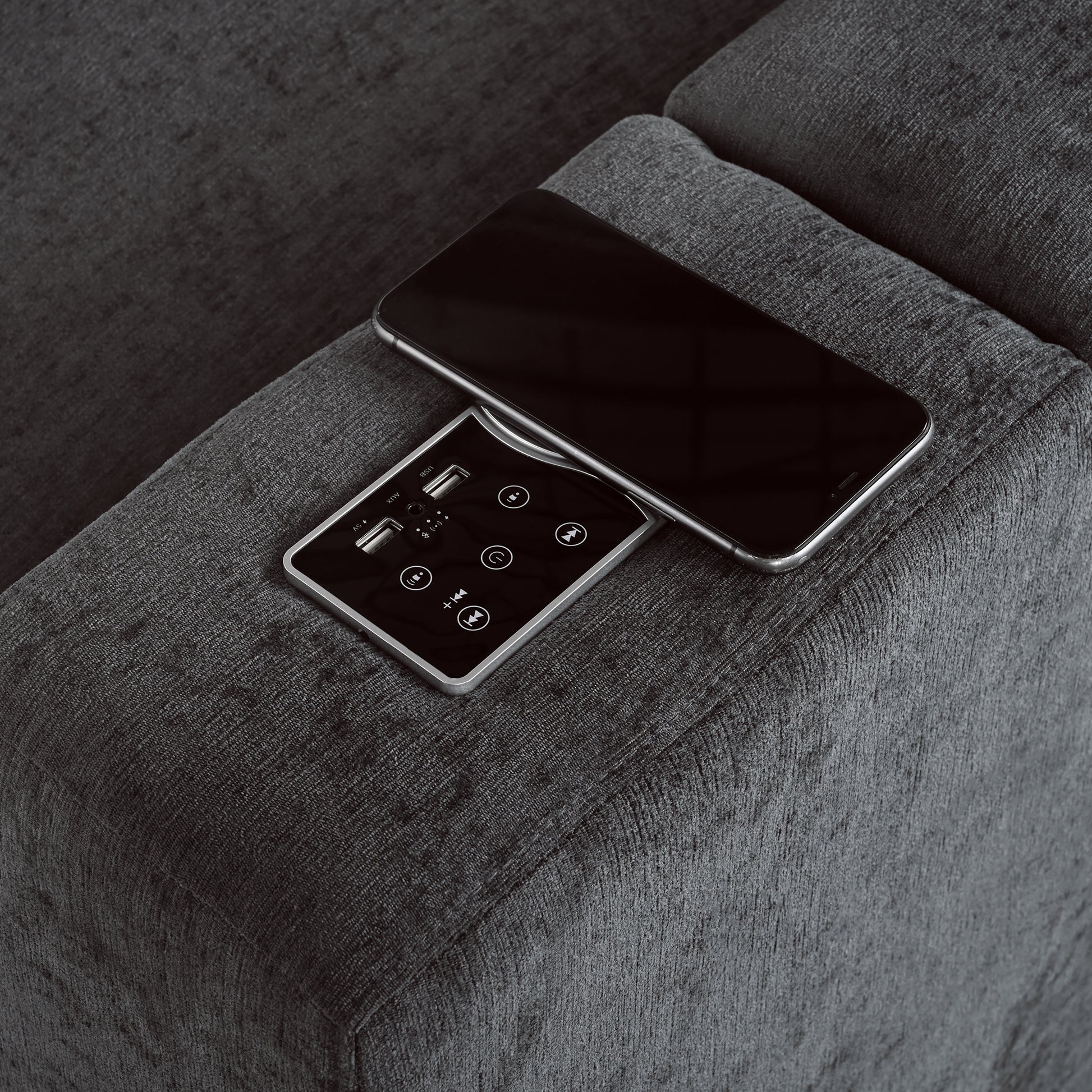 Upholstered Modular Sofa With With Storage Space, Usb Charge Ports,Wireless Charging And Built In Bluetooth Speaker In Arm,Sectional Sofa For Living Room Apartment. Old Sku:Wy000317Aae Gray