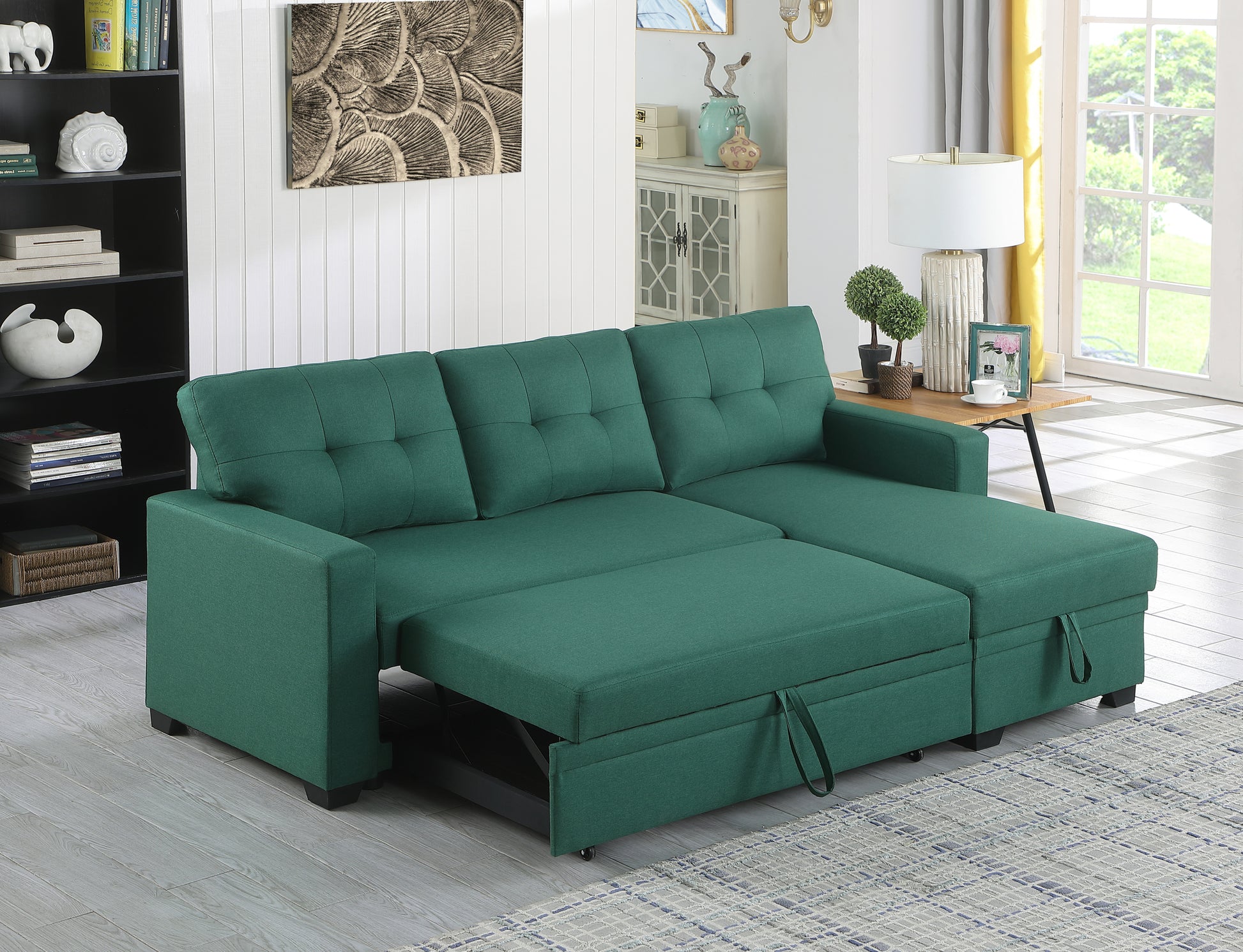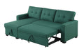 Upholstered Pull Out Sectional Sofa With Chaise Green Foam Linen