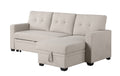Upholstered Pull Out Sectional Sofa With Chaise Beige Foam Linen