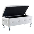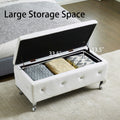 Upholstered Storage Ottoman Bench For Bedroom End Of Bed Faux Leather Rectangular Storage Benches Footrest With Crystal Buttons For Living Room Entryway White White Bedroom Black Pine Wood White Pu Vanity Stools Faux Leather Rectangular American