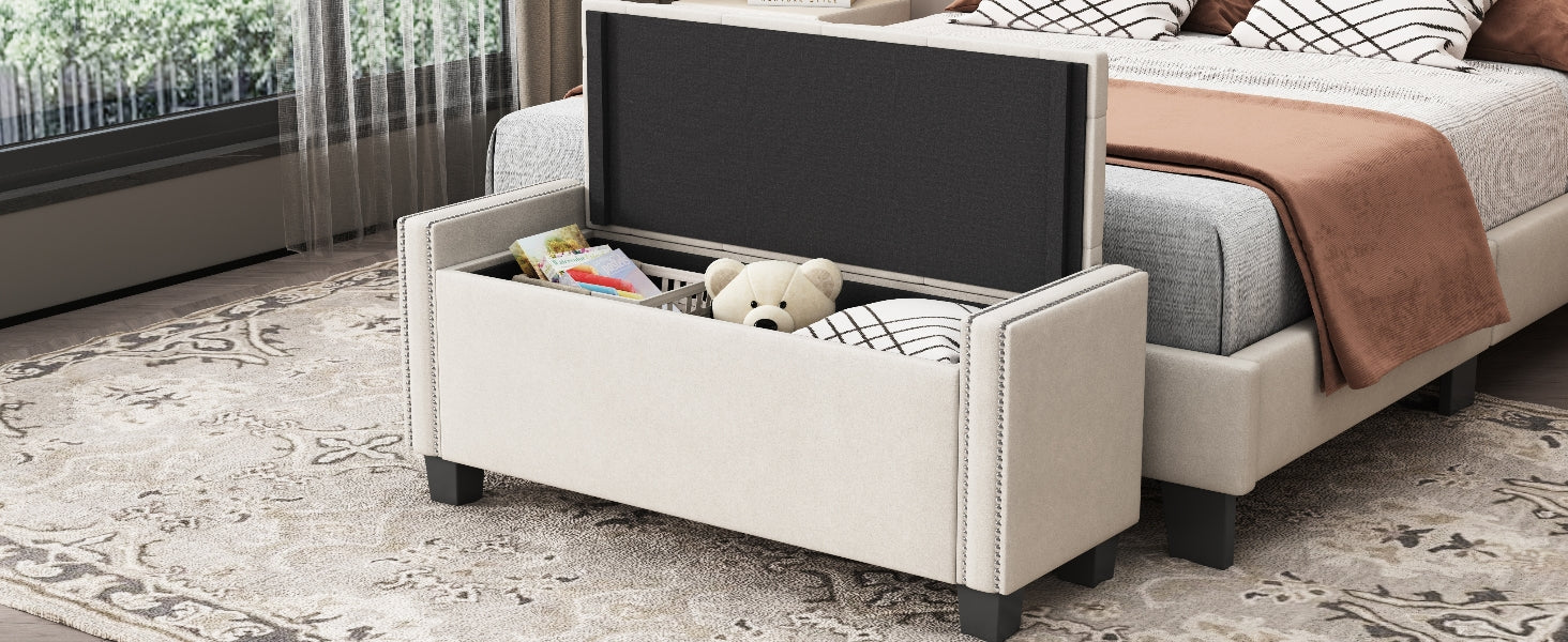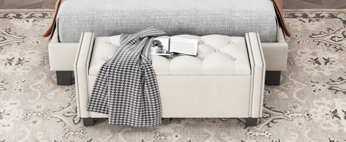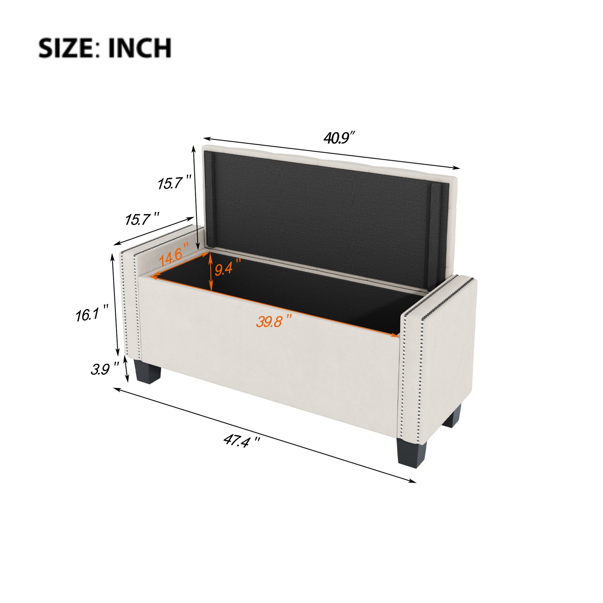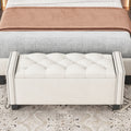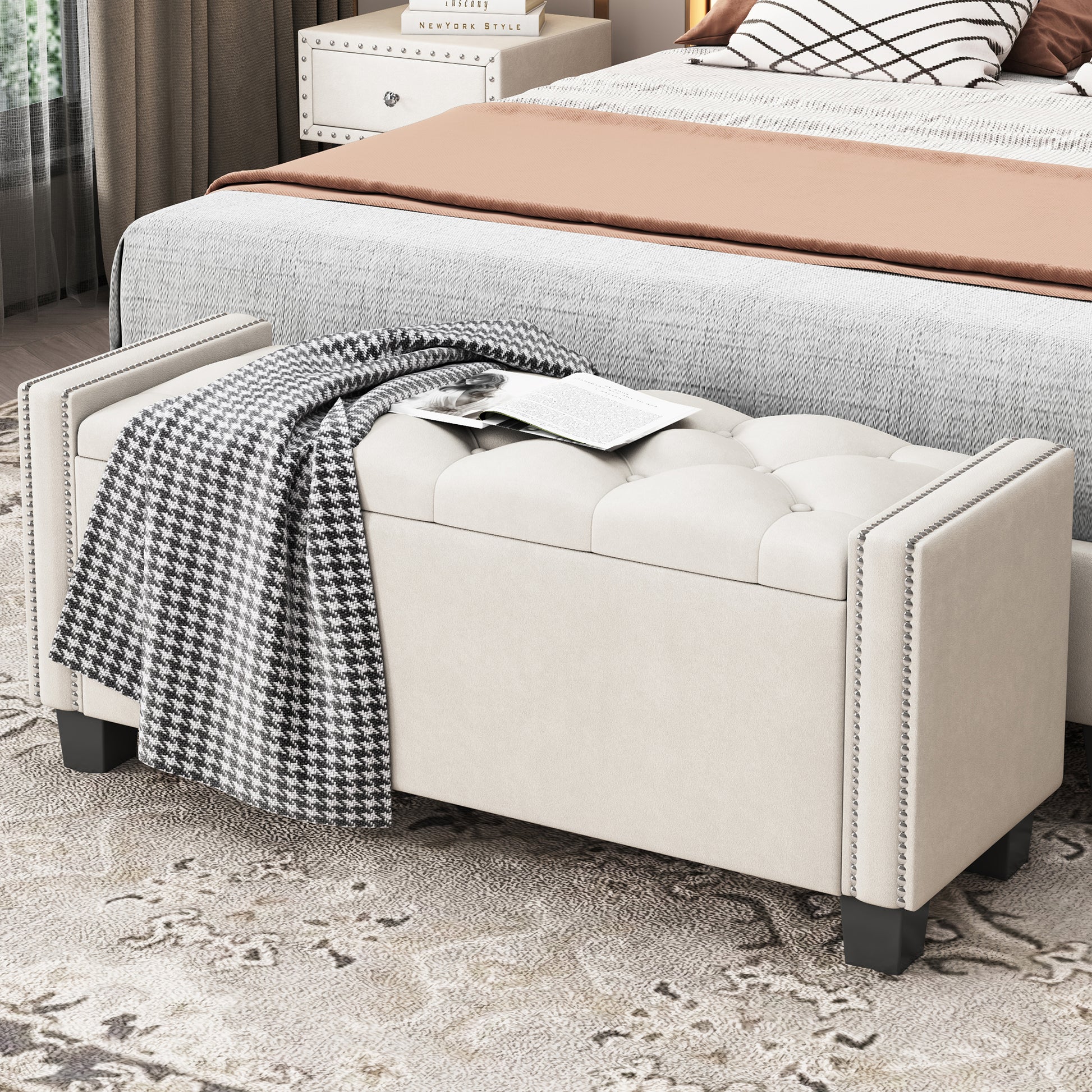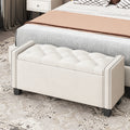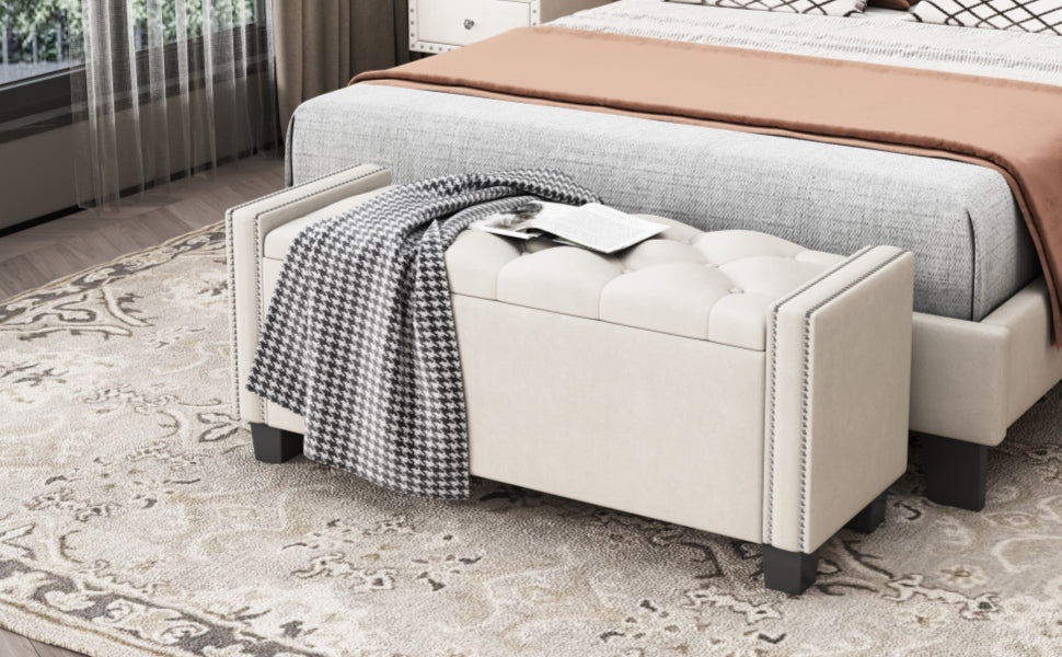 Upholstered Velvet Storage Ottoman Bench For Bedroom, End Of Bed Bench With Rivet Design, Tufted Foot Rest Stool,Beige Beige Beige Mdf
