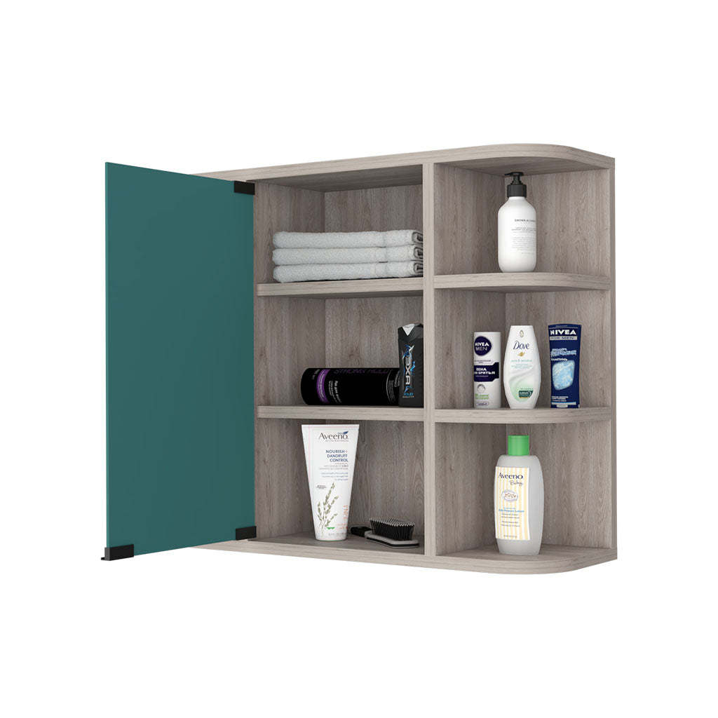Valdez Medicine Cabinet With Six Shelves, Mirror Cabinet Beige Mdf Engineered Wood