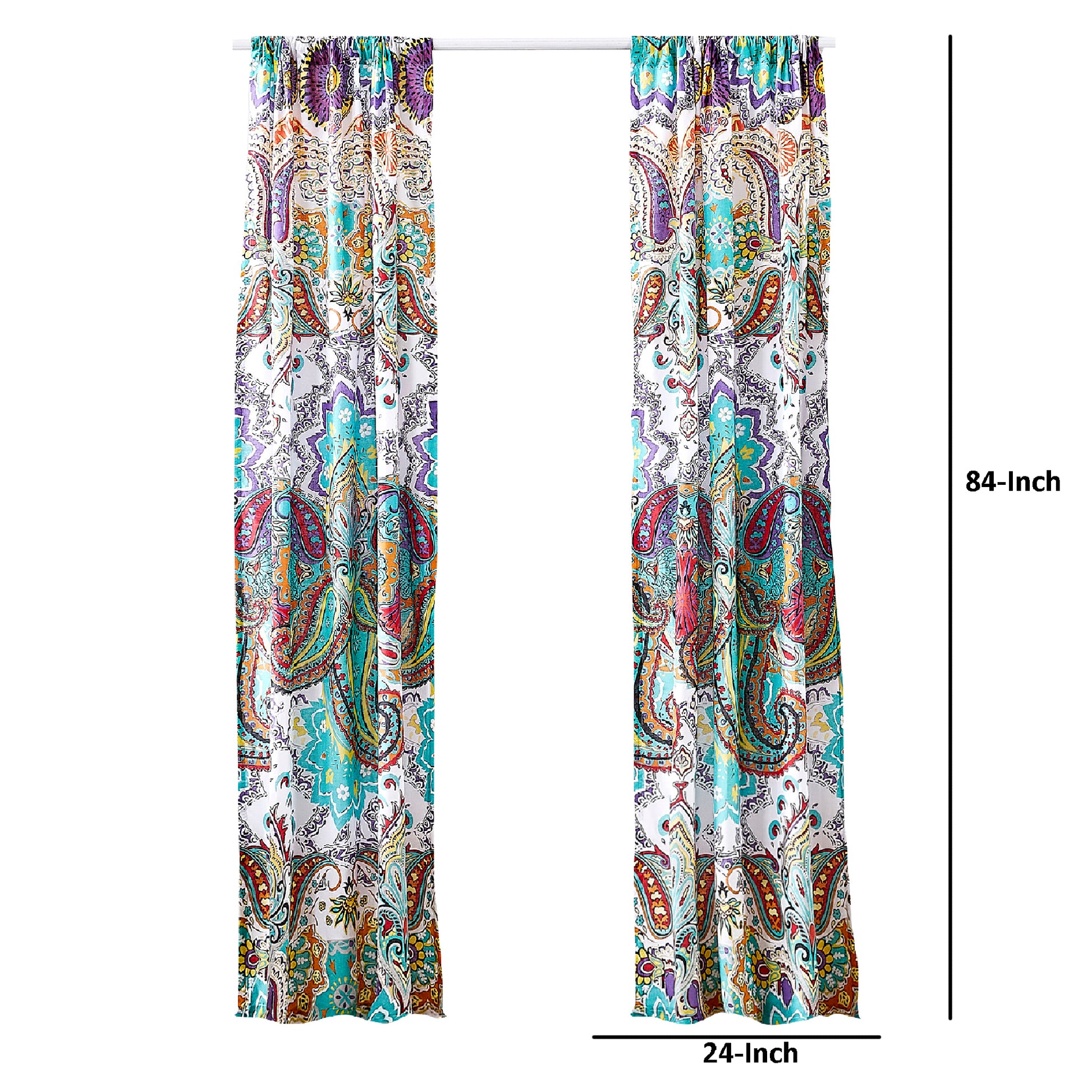 Vana 84 Inch Window Curtains, Decorative Paisley Print Design, Rod Pockets Multicolor Polyester