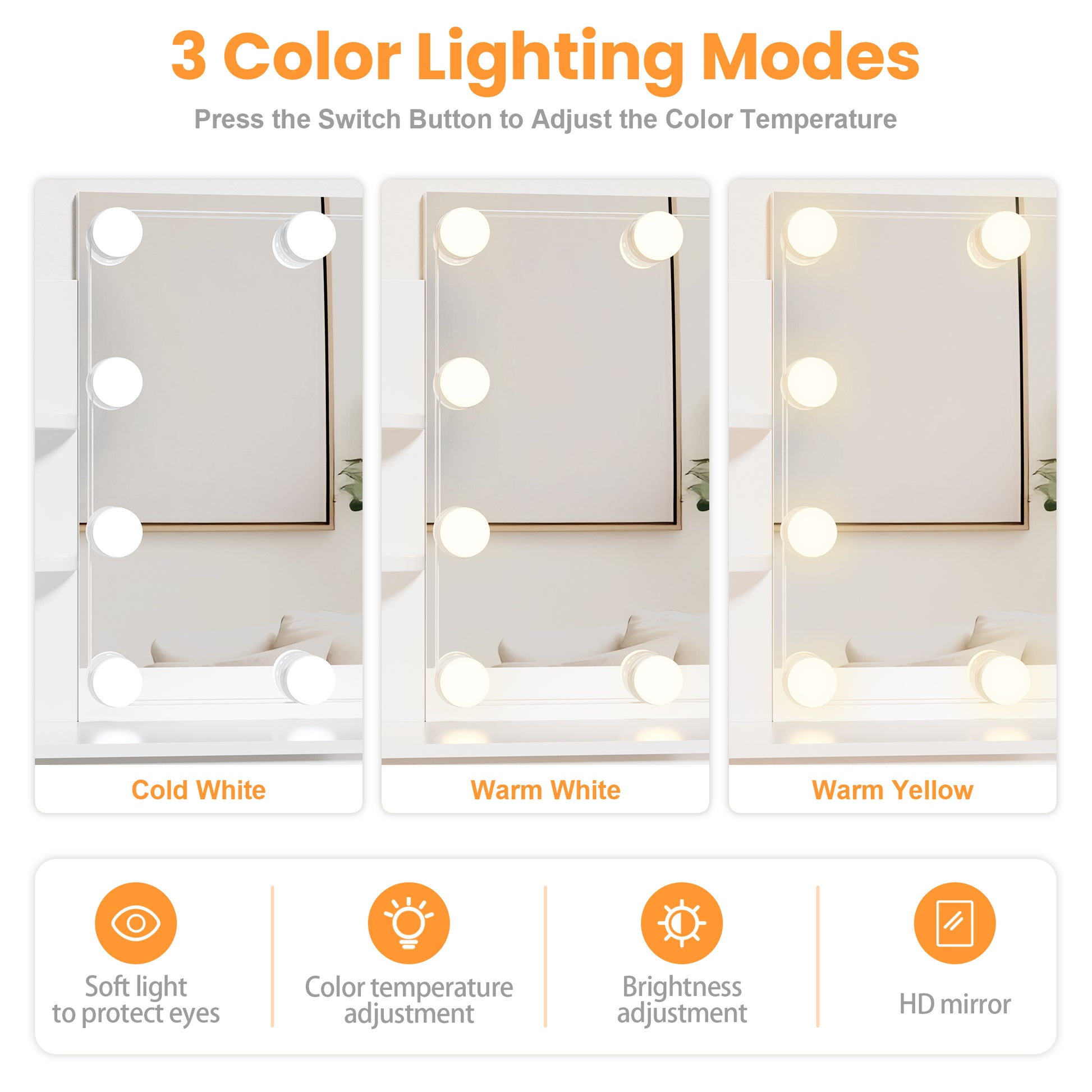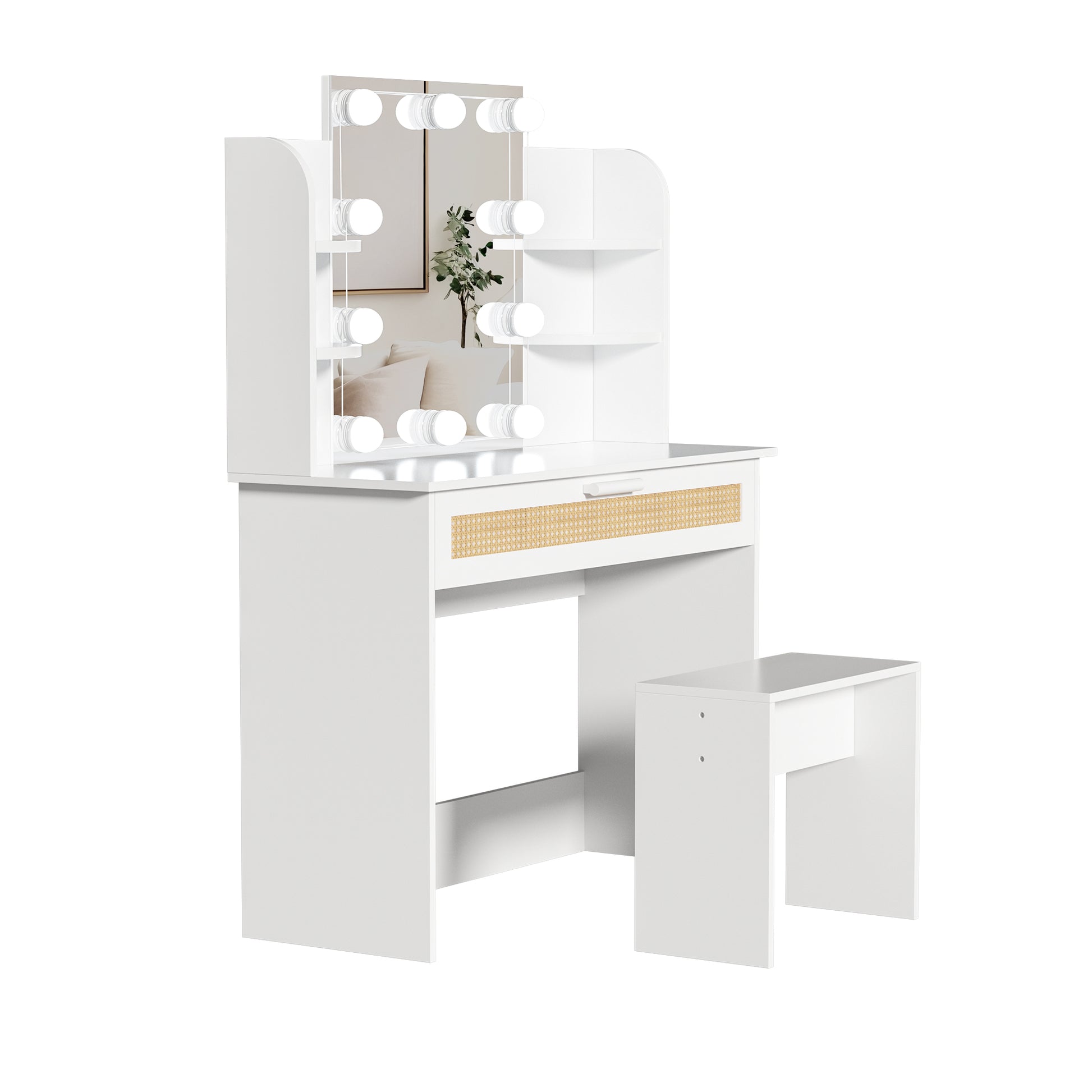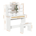 Vanity Desk Set Stool & Dressing Table With Led Lighting Mirror Drawer And Compartments Modern Wood Cosmetic Table Chest Of Drawers White Color Gloss White White 1 Drawer Bedroom Wood