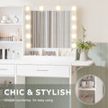 Vanity Desk With Drawers & Mirror With Lights, With Drawers & Cabinet 3 Shelves Lots Storage For Stylish Bedroom White White Particle Board