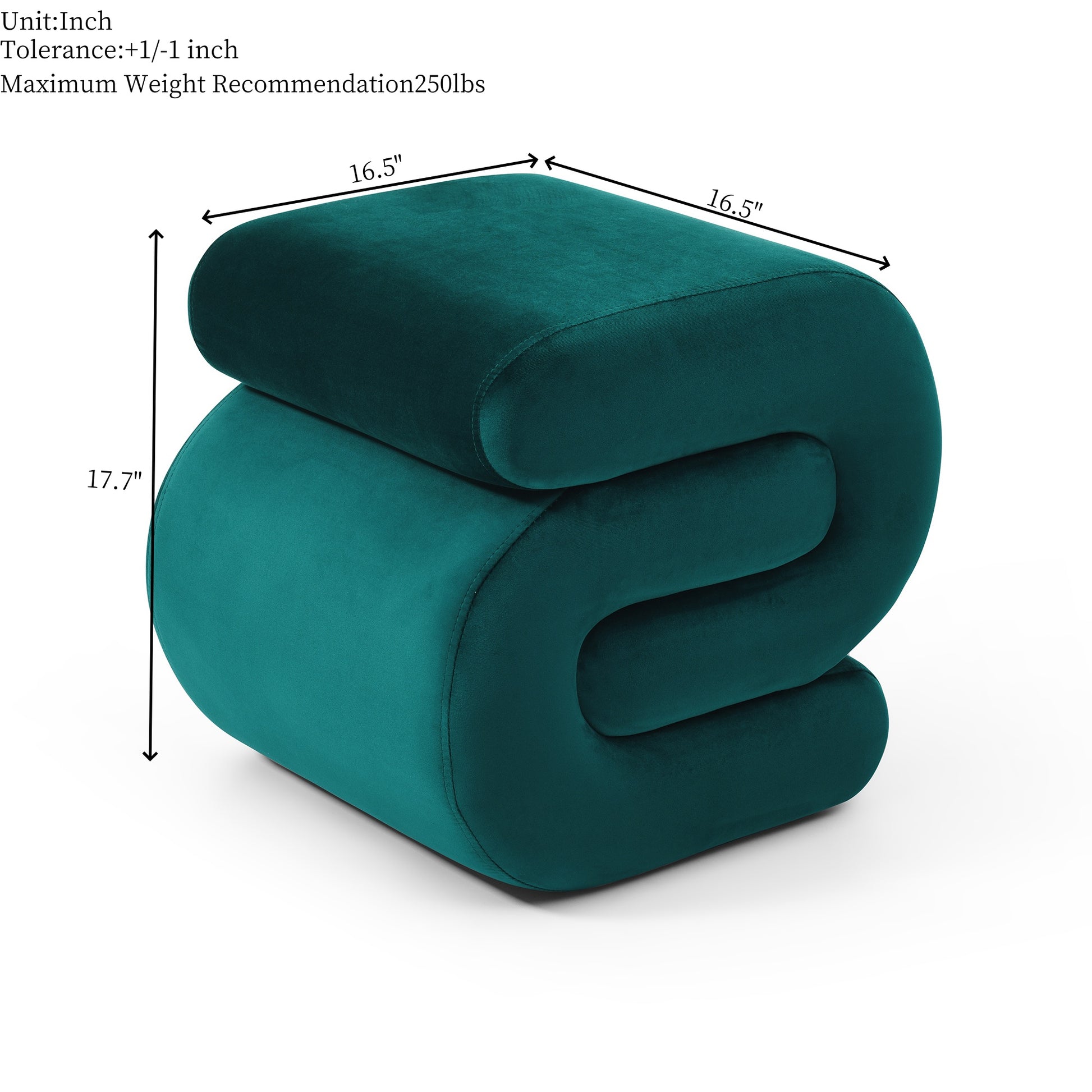Velvet Ottoman,Modern Upholstered Footstoo, Comfortable Velvet Vanity Stool,S Shape Small Makeup Stool, Under Desk Ottoman For Living Room, Bedroom, Entrance Green Green Velvet