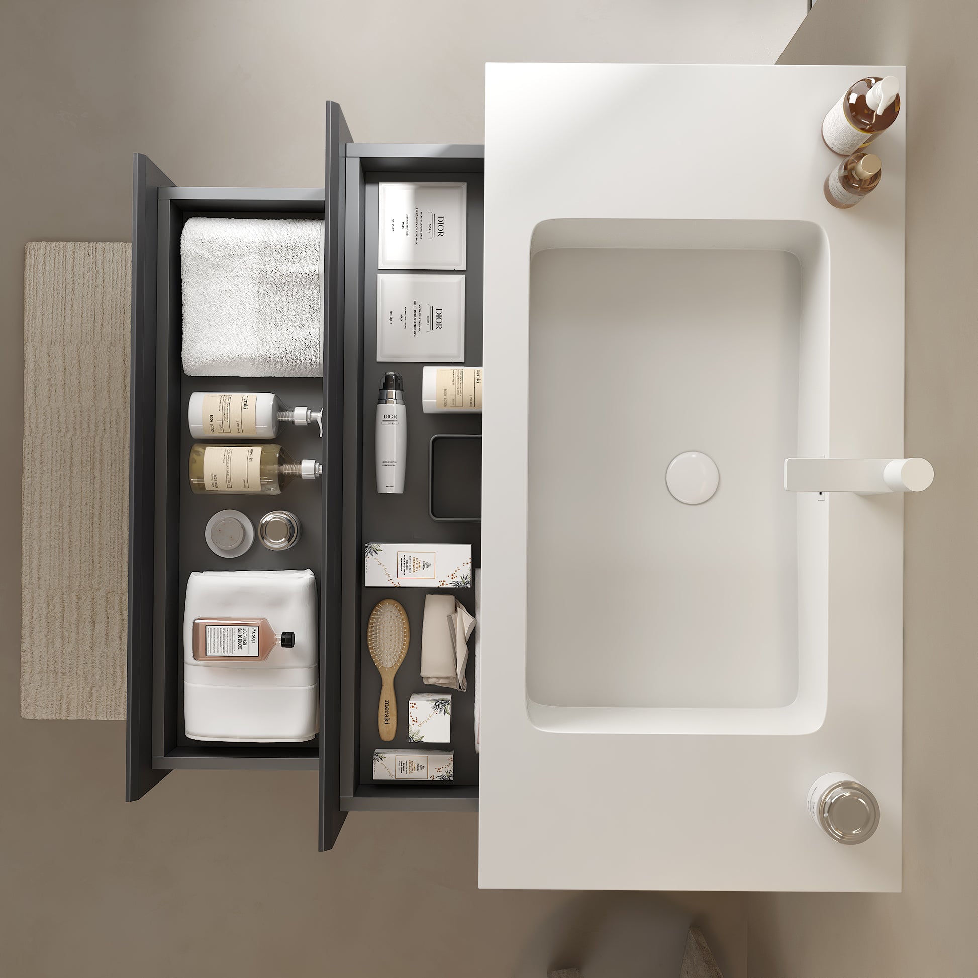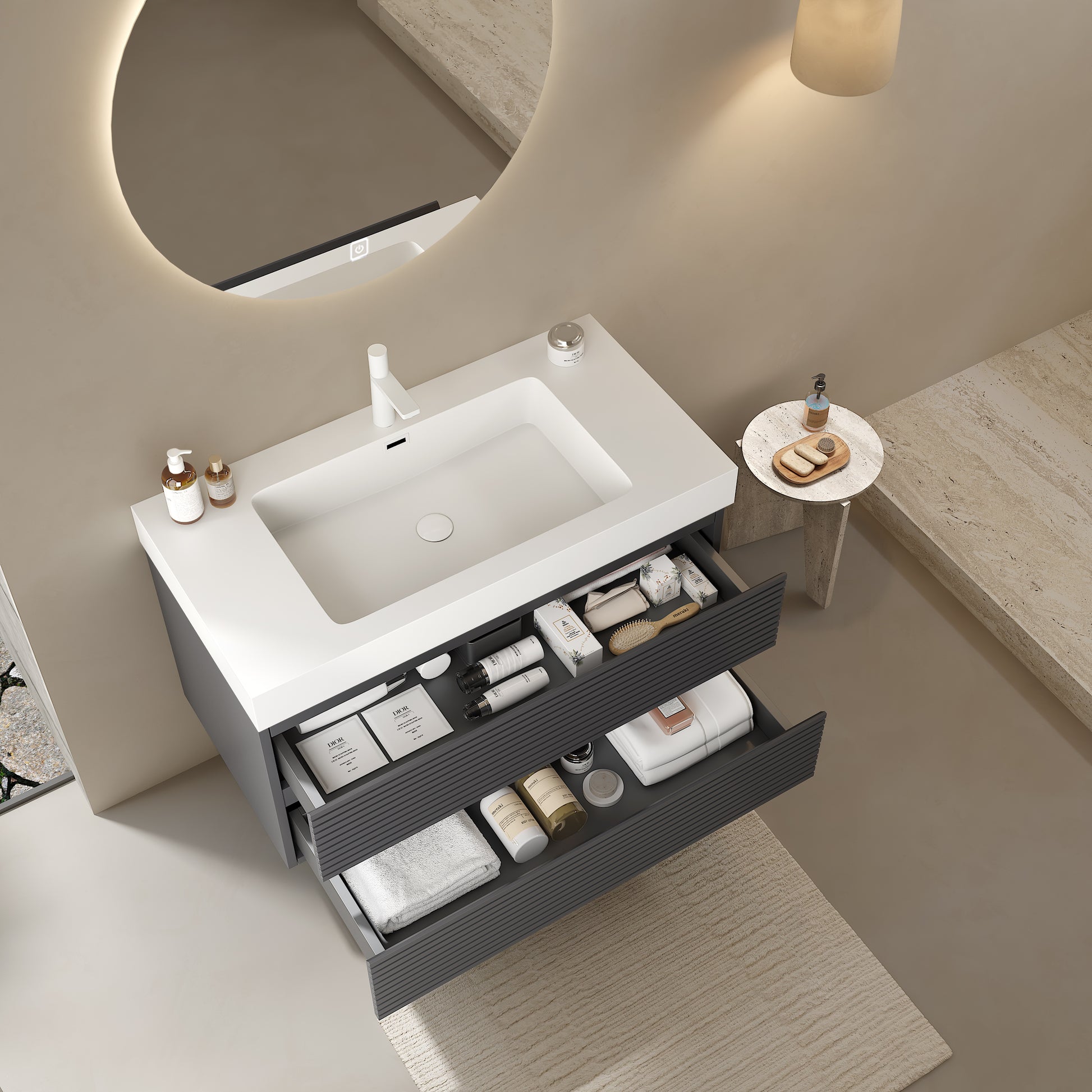 Veno 36" Bathroom Vanity With Undermount Sink, Modern Wall Mounted Floating Plywood Striped Bathroom Storage Cabinet With 2 Drawers, White Integrated Acrylic Rectangular Basin Without Faucet, Gray White Gray Bathroom Modern,Scandinavian Plywood Acrylic