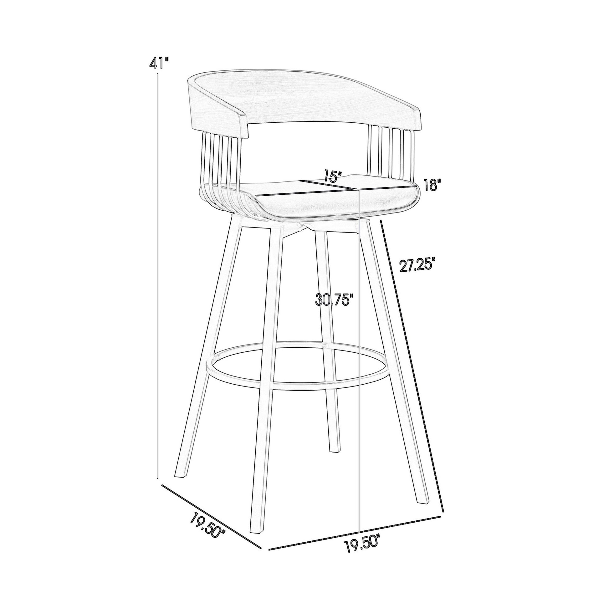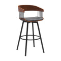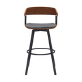 Vera 31 Inch Swivel Barstool Chair, Curved Open Back, Walnut Brown, Gray Black Brown Grey Wood Metal