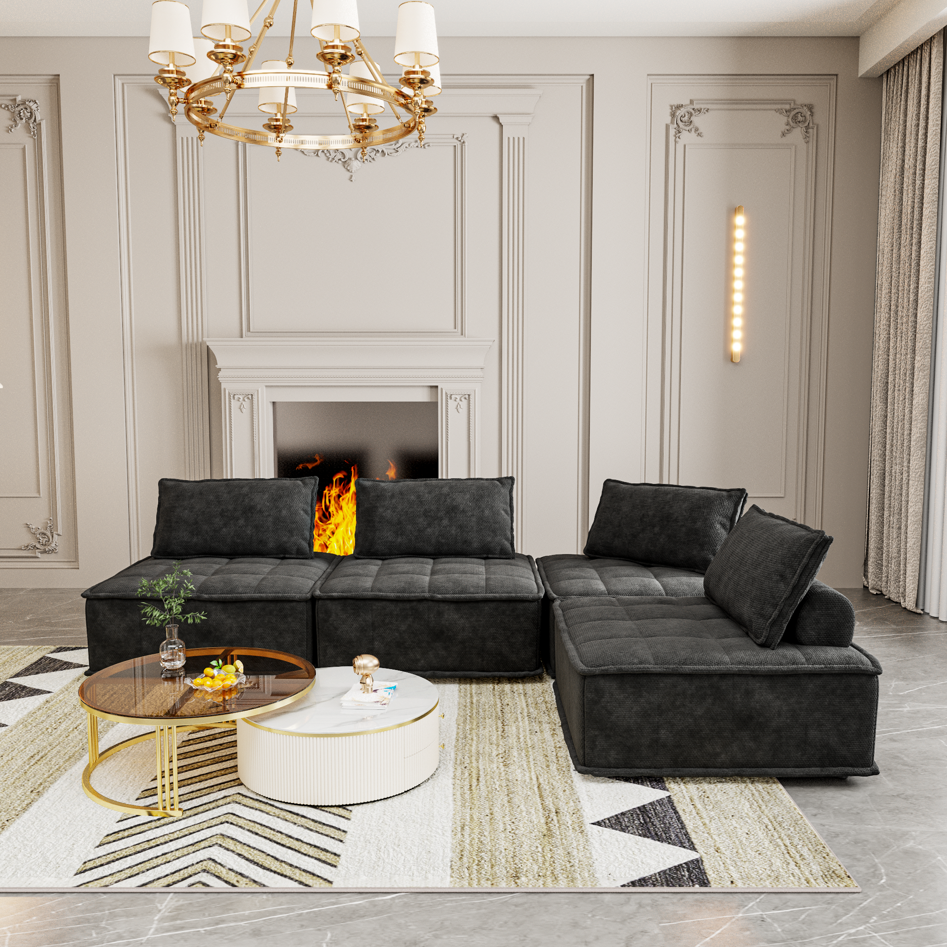 Versatile 4 Module Sofa With Adjustable Backrests And Customizable Configuration Chenille Black Sofa Black Chenille 4 Seat