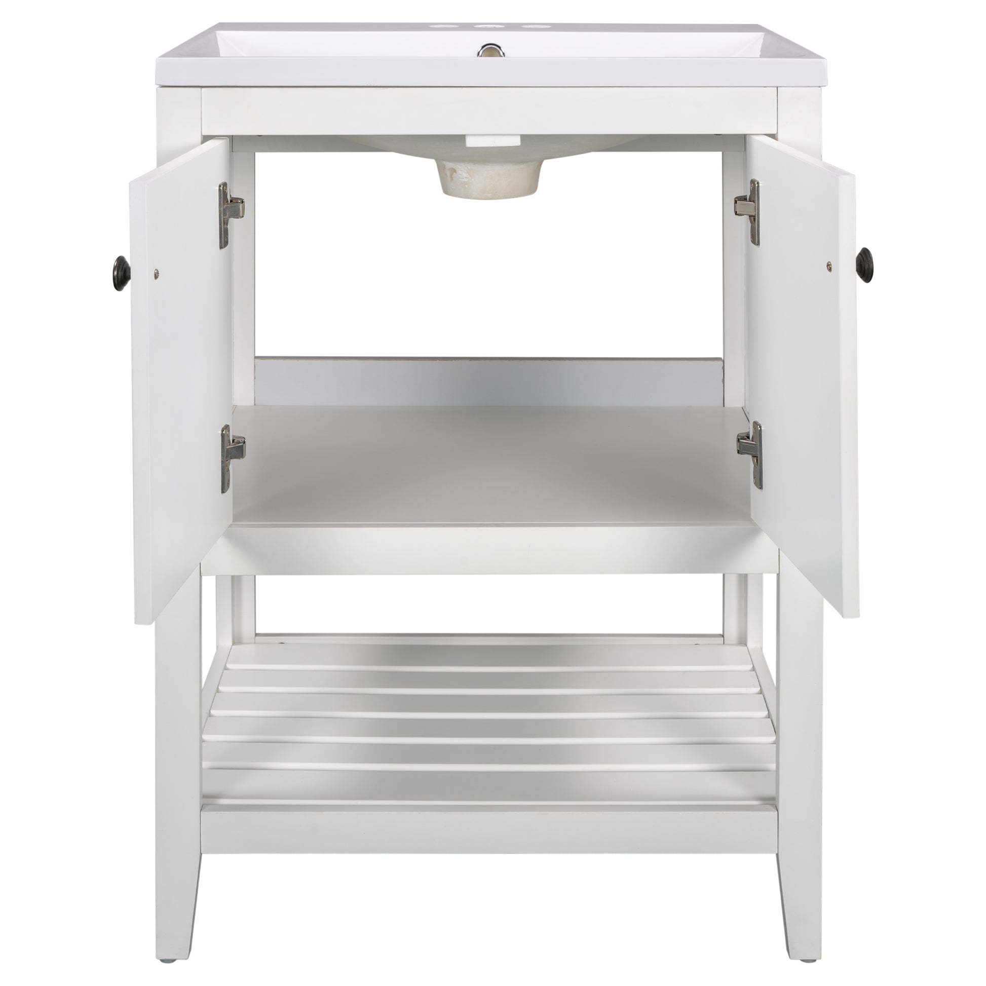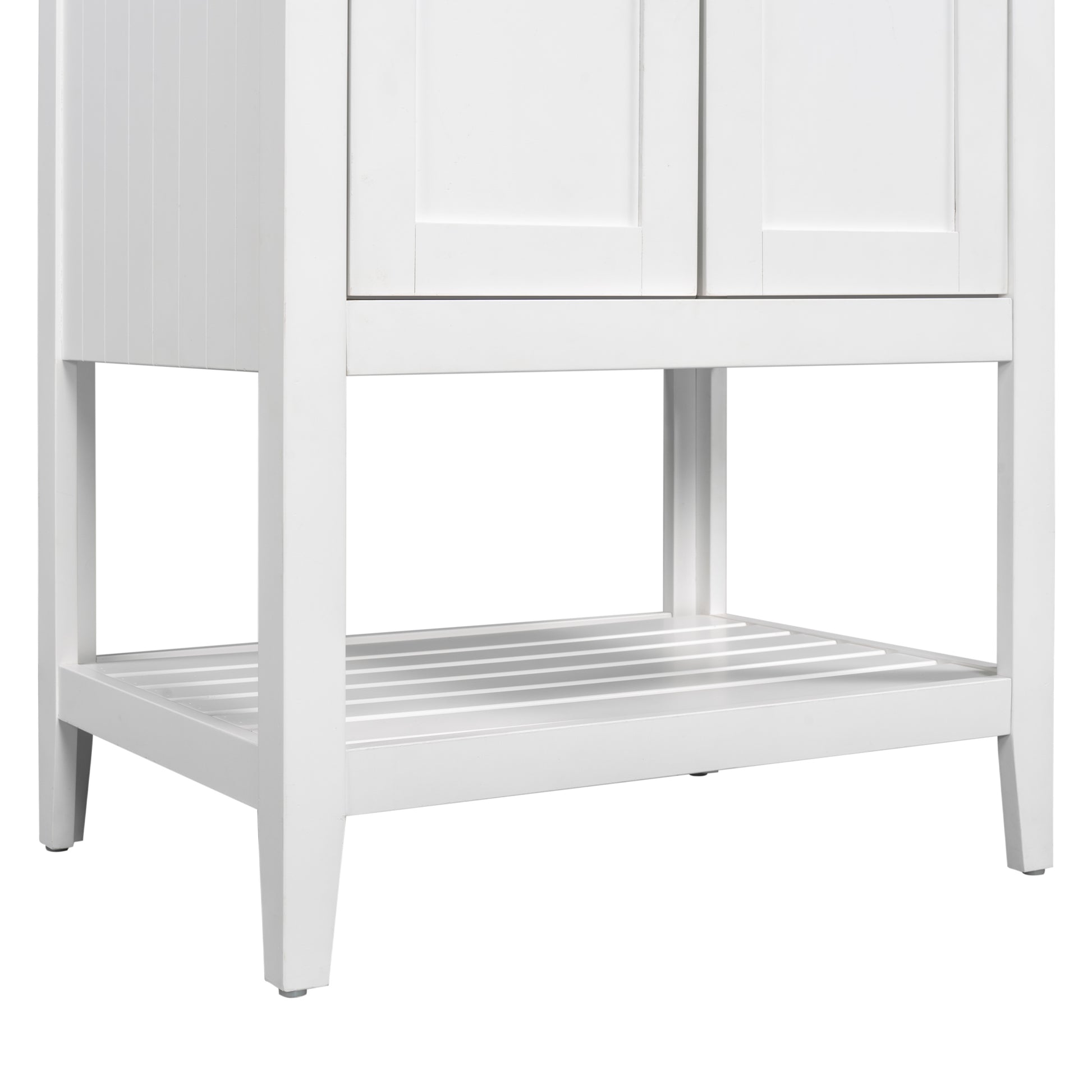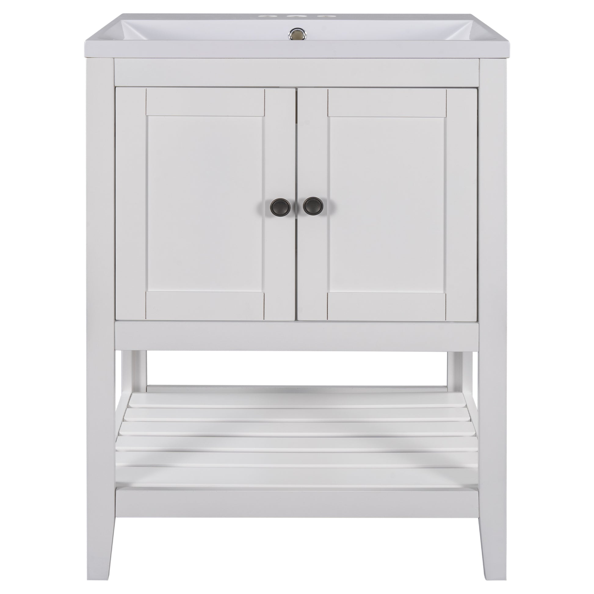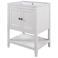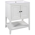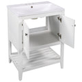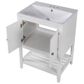 Video 24" White Modern Sleek Bathroom Vanity Elegant Ceramic Sink With Solid Wood Frame Open Style Shelf Old Sku: Jl000001Aak White Solid Wood