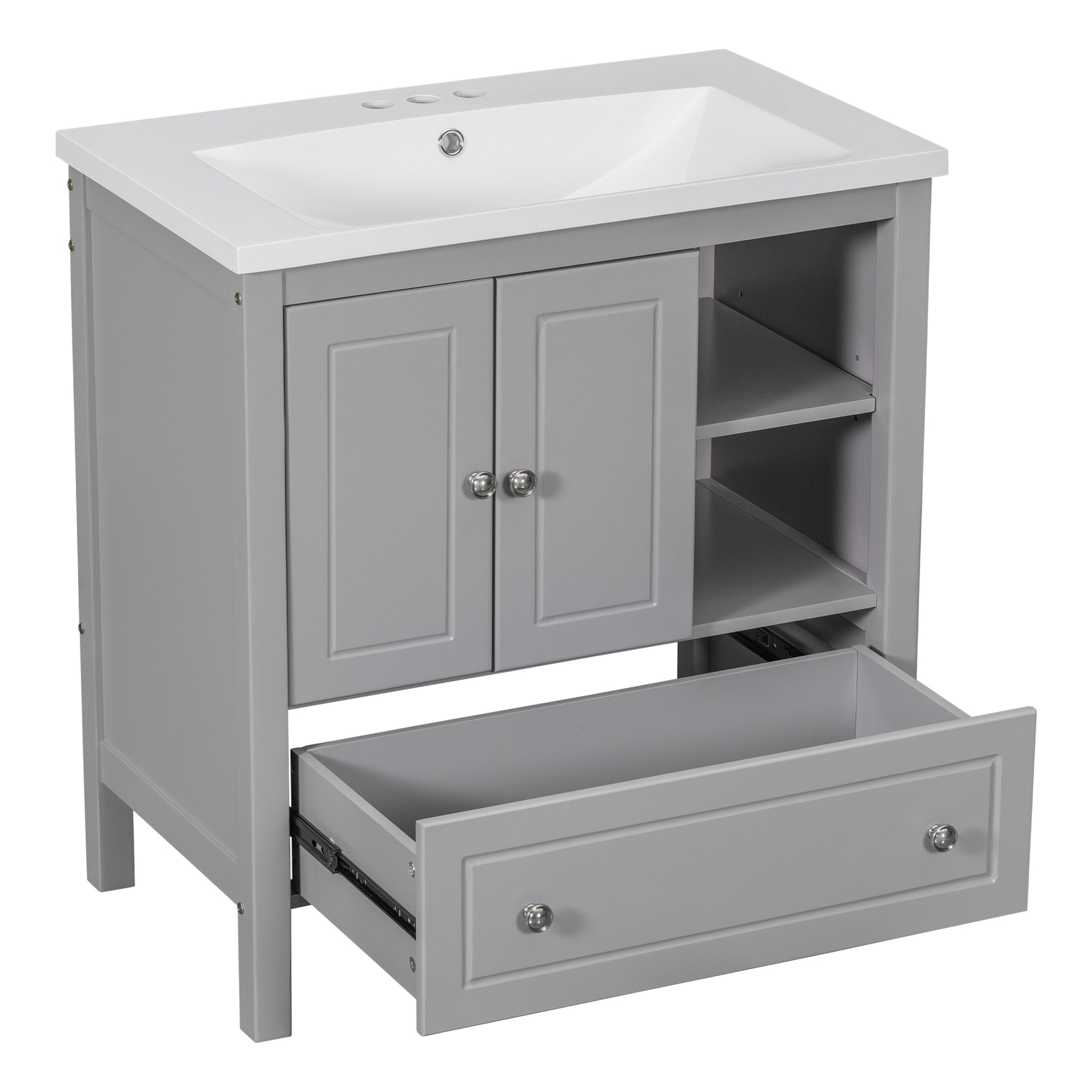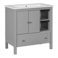 Video 30" Bathroom Vanity With Sink, Bathroom Storage Cabinet With Doors And Drawers, Solid Wood Frame, Ceramic Sink, Grey Old Sku: Jl000002Aag Grey Solid Wood Mdf