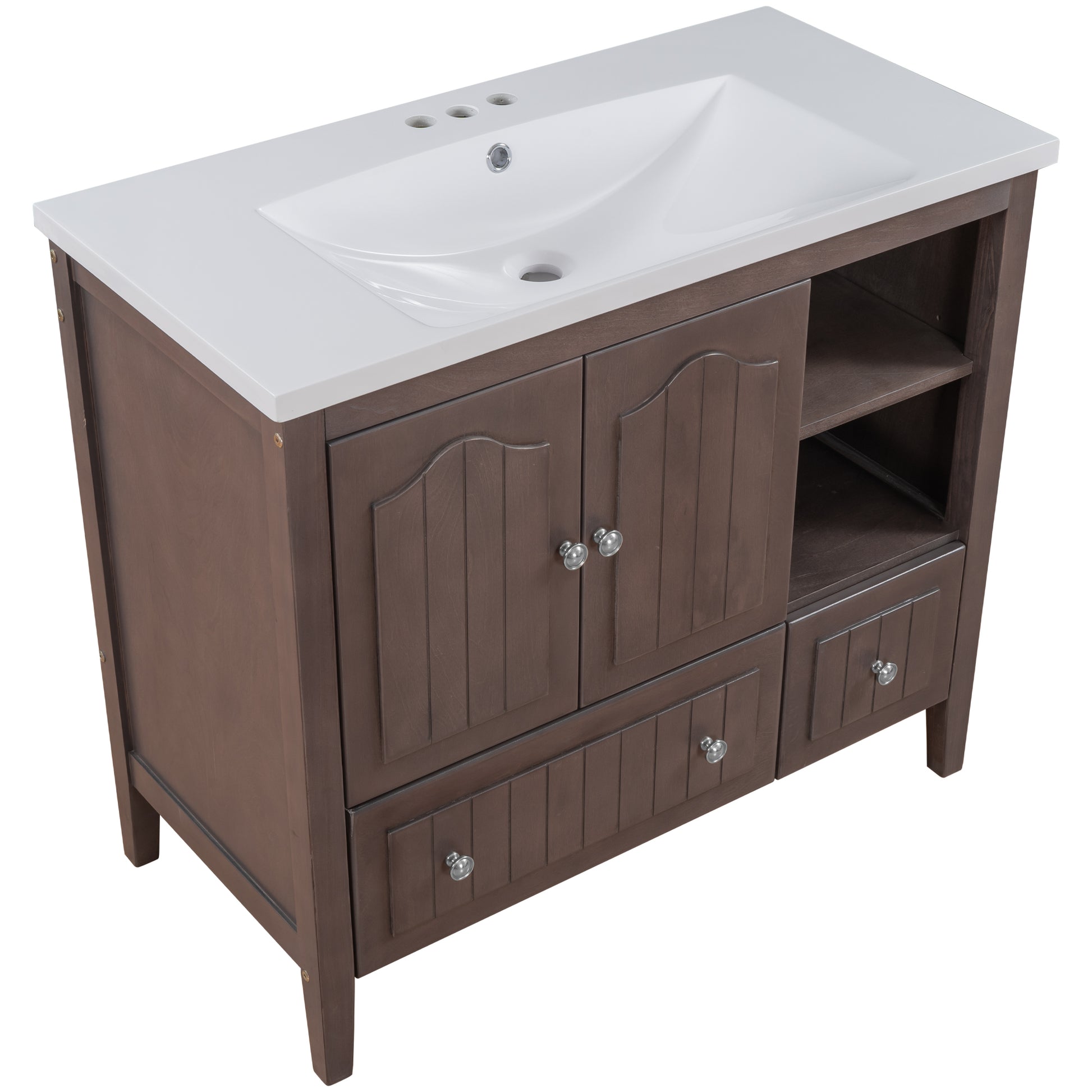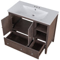 Video 36" Bathroom Vanity With Ceramic Basin, Bathroom Storage Cabinet With Two Doors And Drawers, Solid Frame, Metal Handles, Brown Old Sku: Jl000003Aad Brown Solid Wood