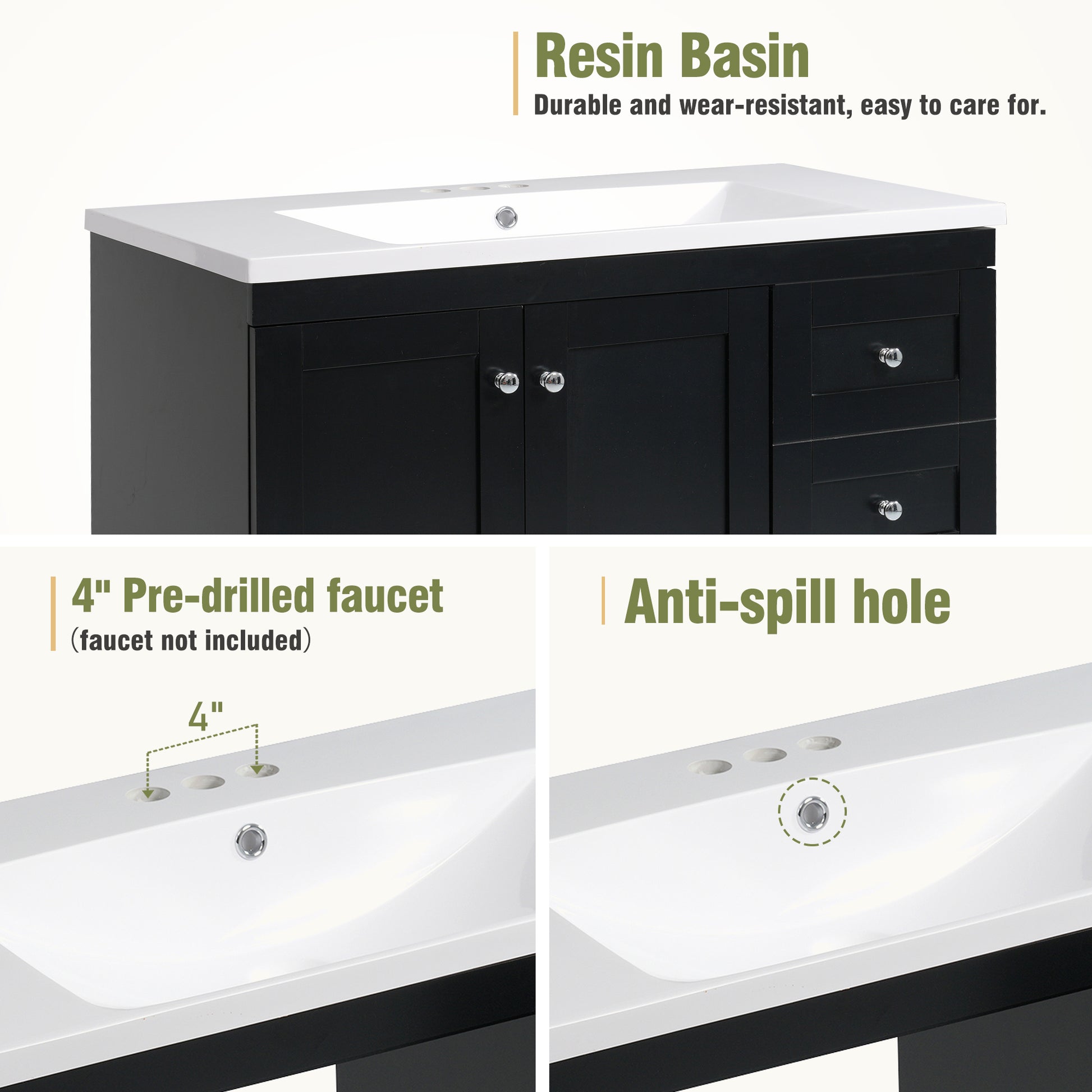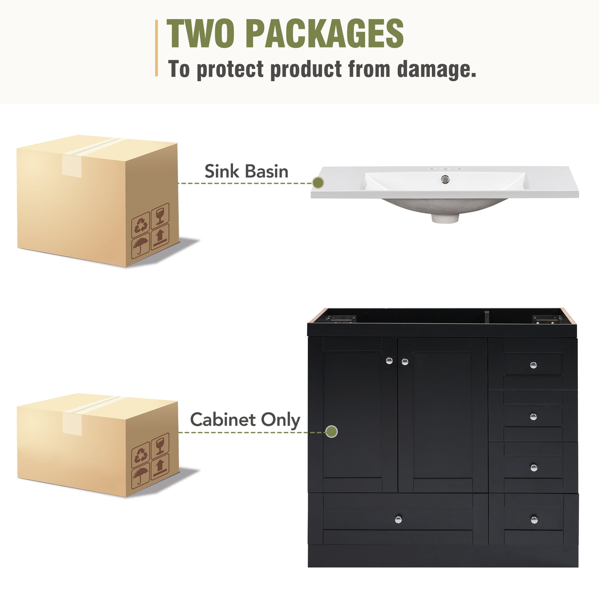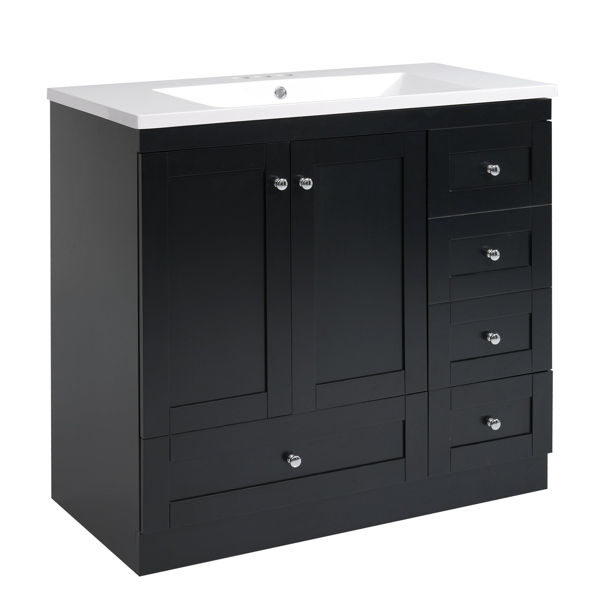 Video 36 Inch Shaker Style Free Standing Bathroom Vanity Cabinet With Sink, 4 Soft Close Drawers And 2 Soft Close Doors Black Bathroom Mdf