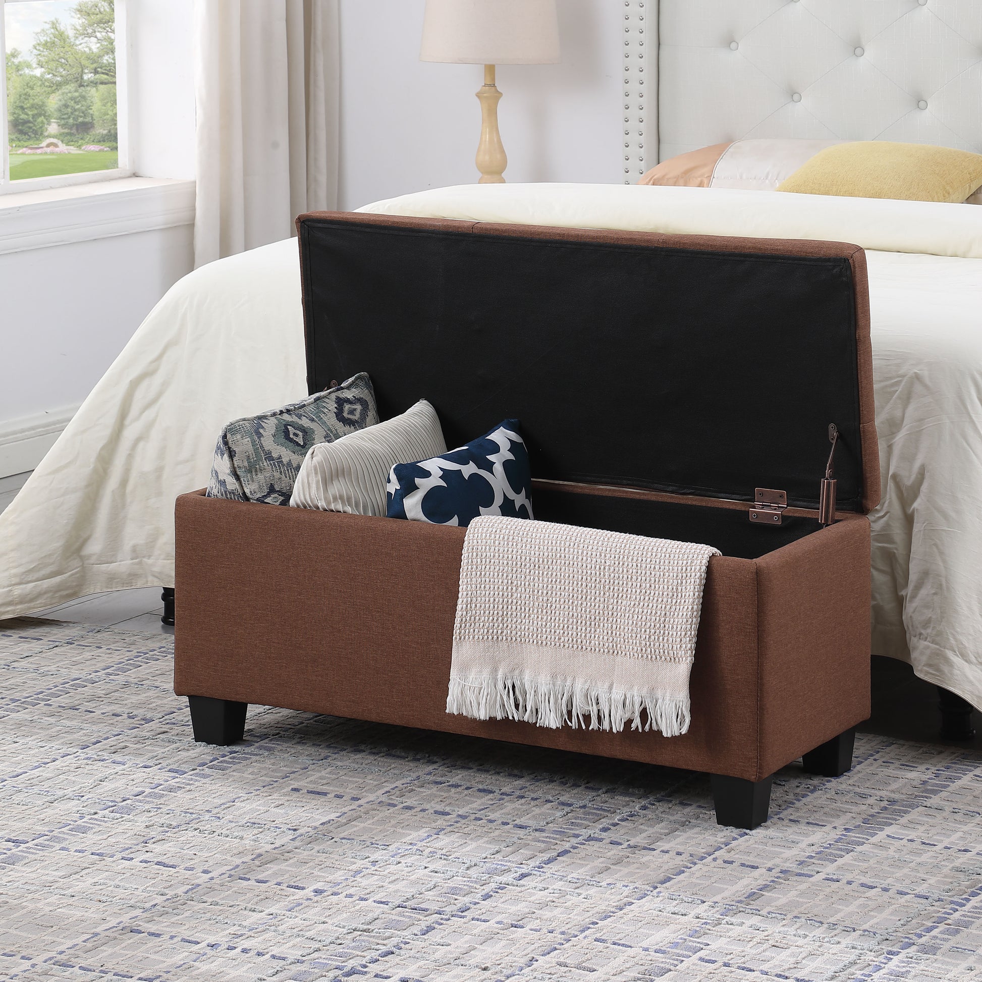 Video Large Storage Ottoman Bench Set, 3 In 1 Combination Ottoman, Tufted Ottoman Linen Bench For Living Room, Entryway, Hallway, Bedroom Support 250Lbs Brown Fabric