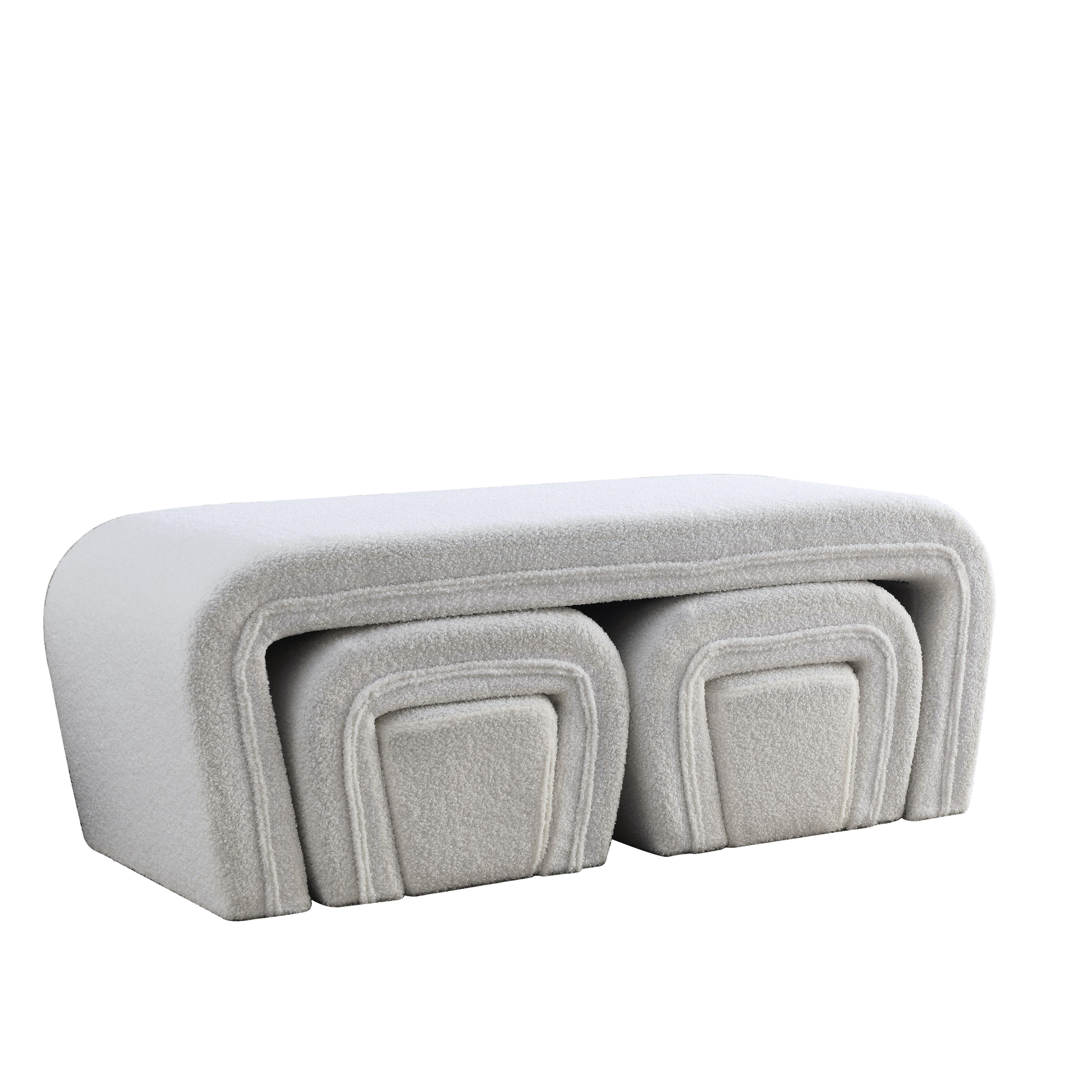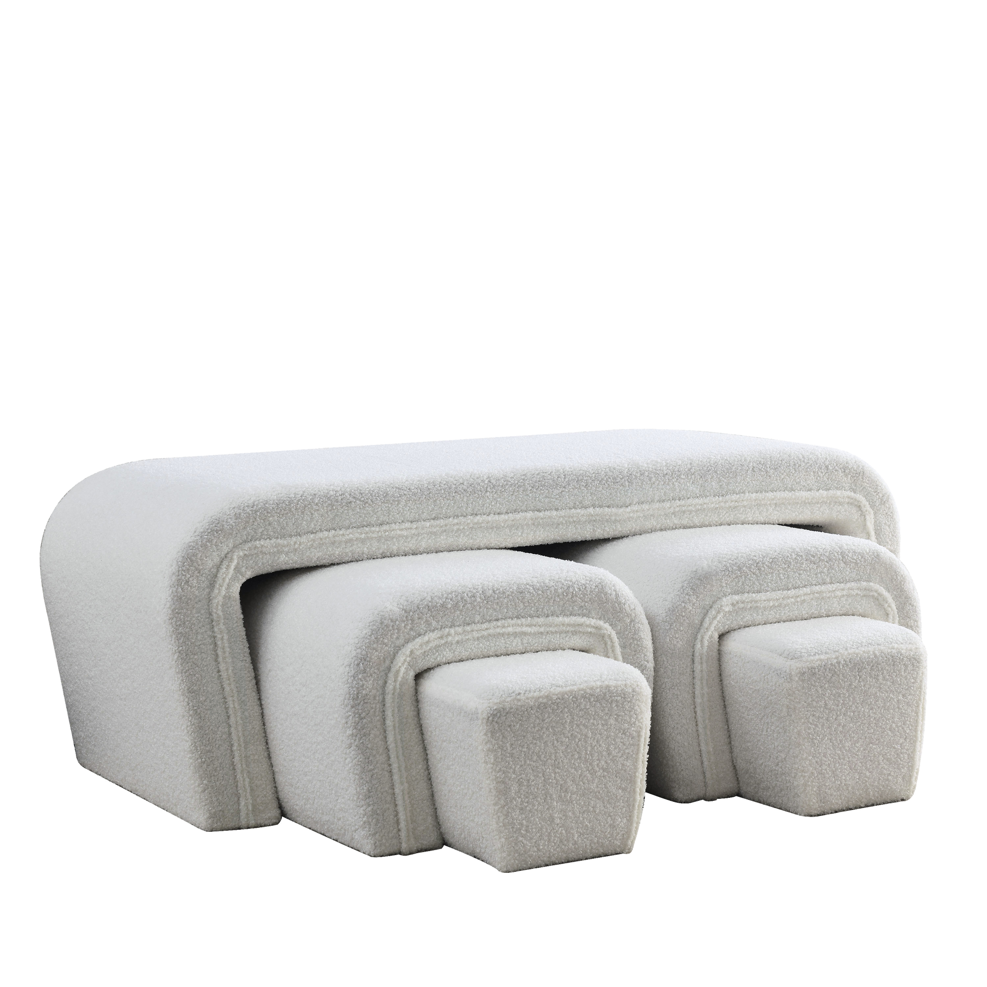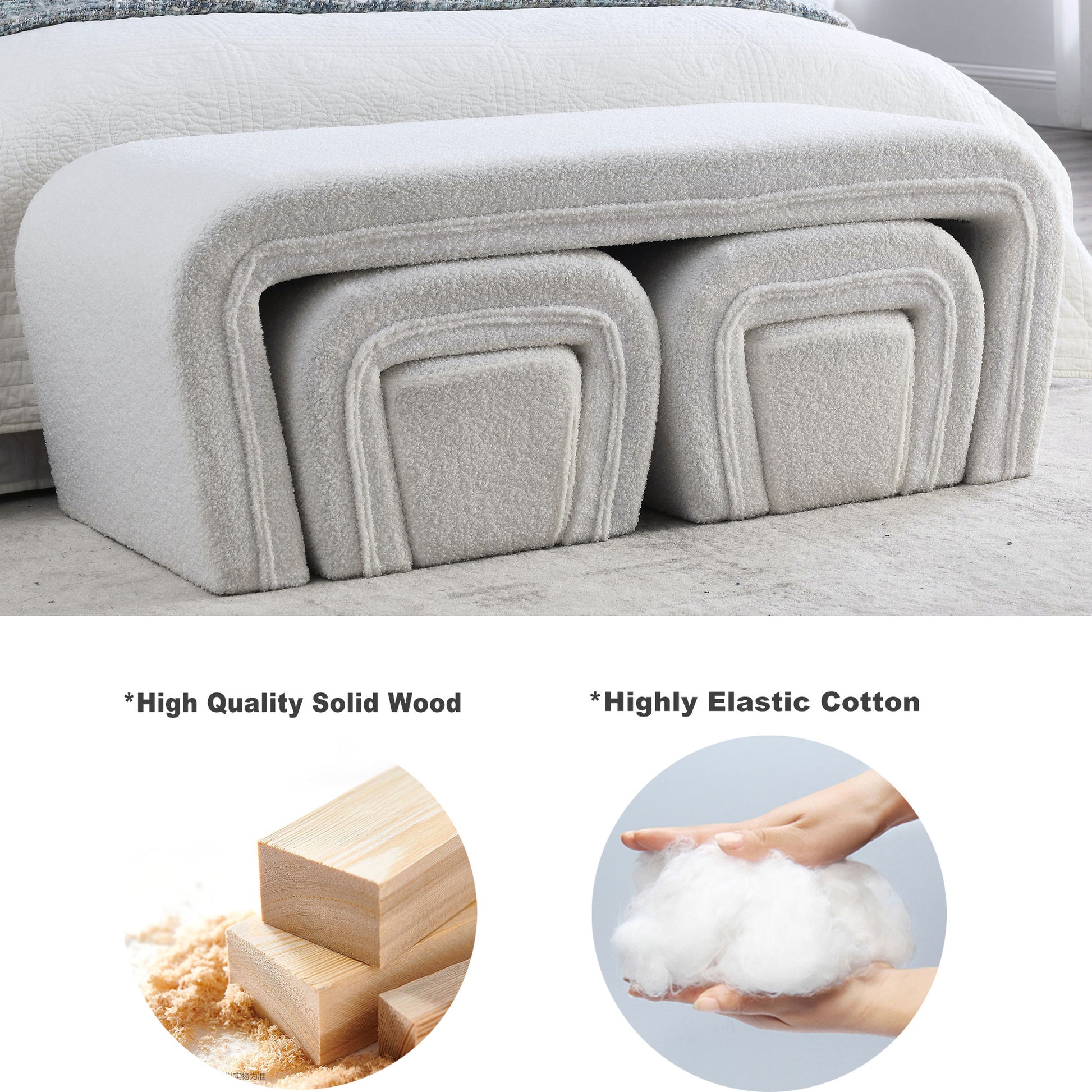 Video Welike 46" W Modern Contemporary Upholstered Nesting Bench, Including Four Nesting Benches, Teddy White Teddy Polyester Fabric