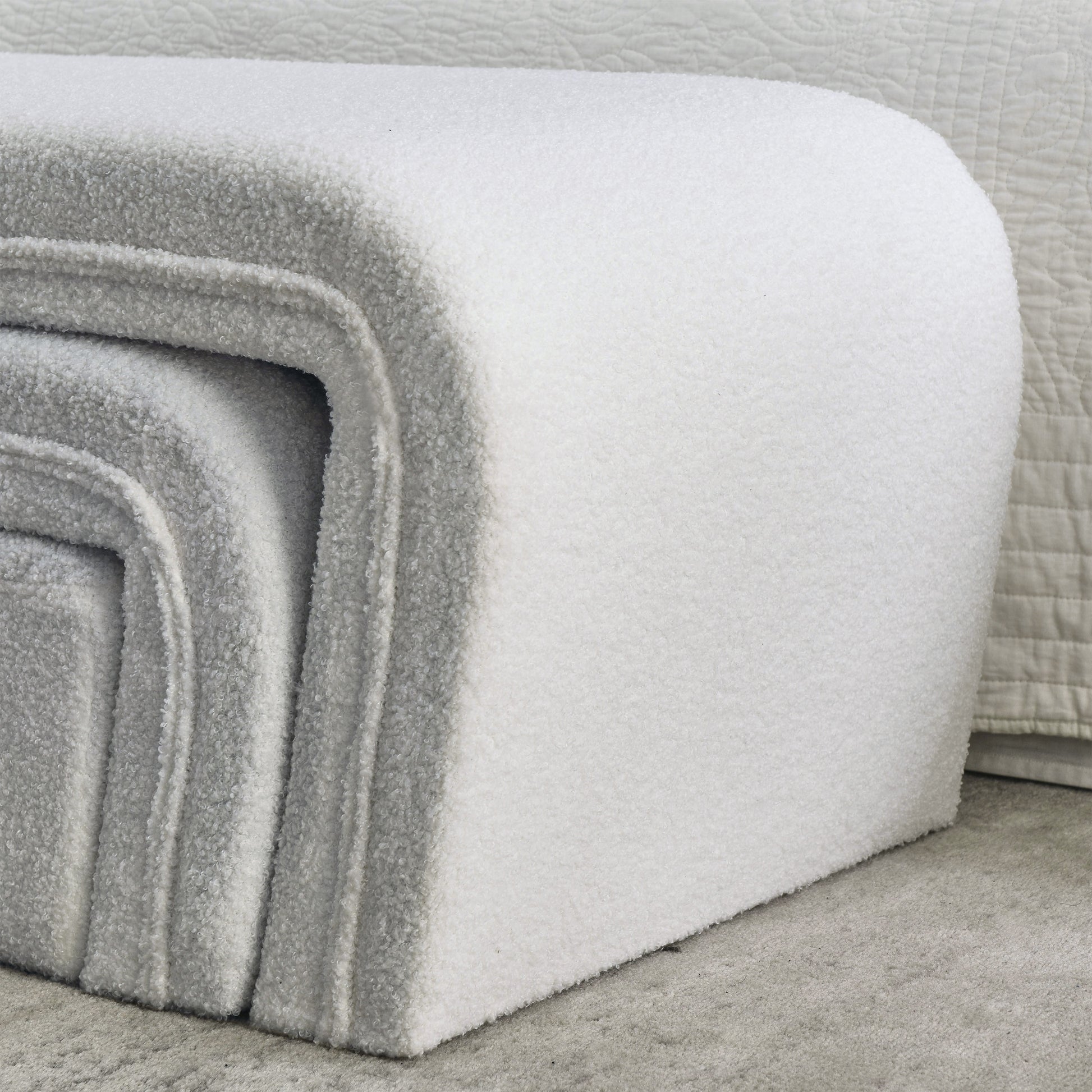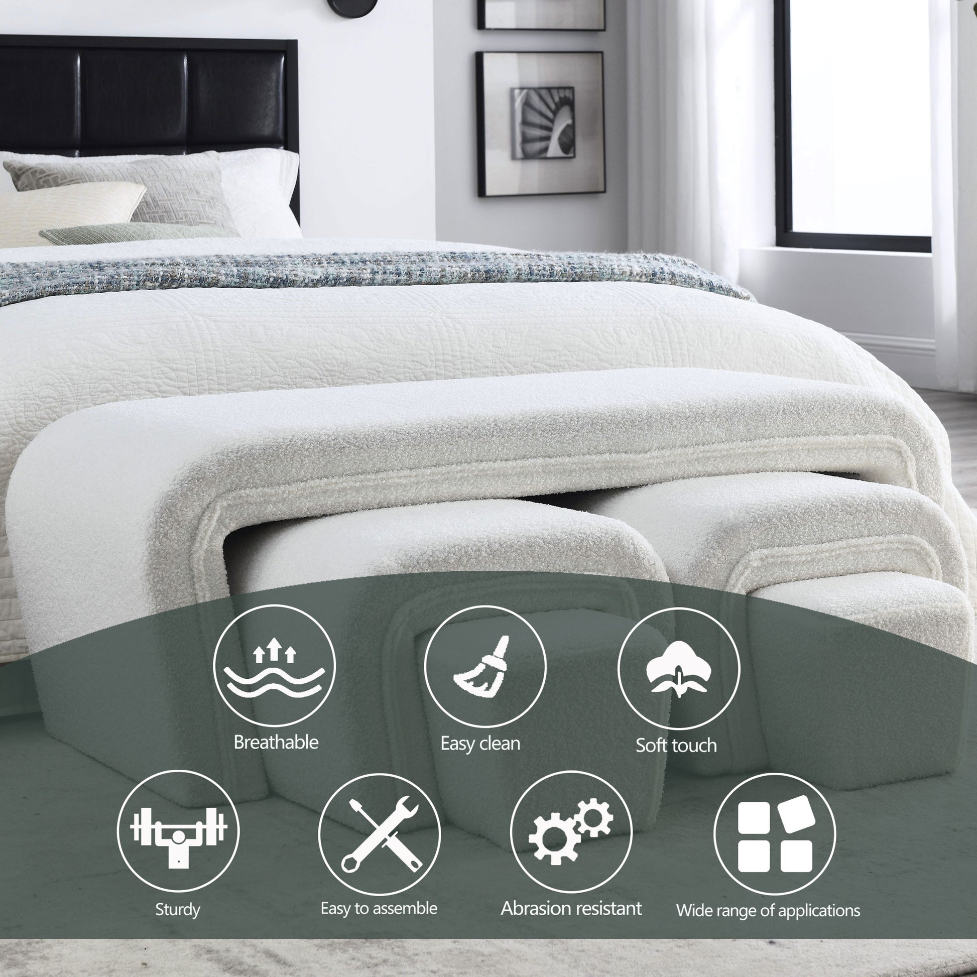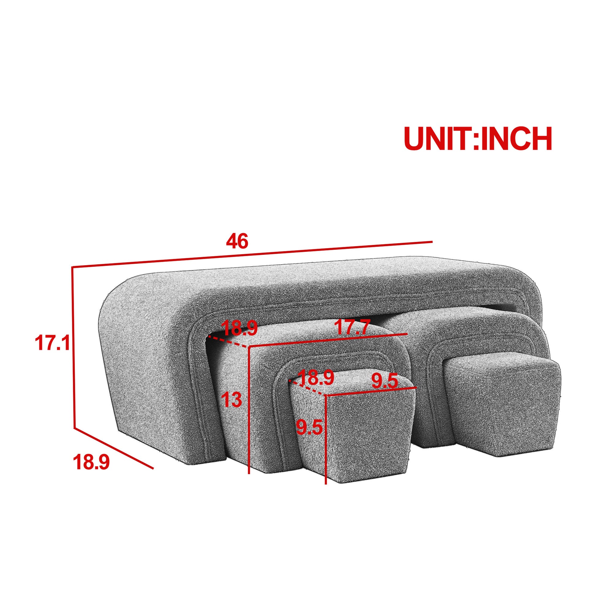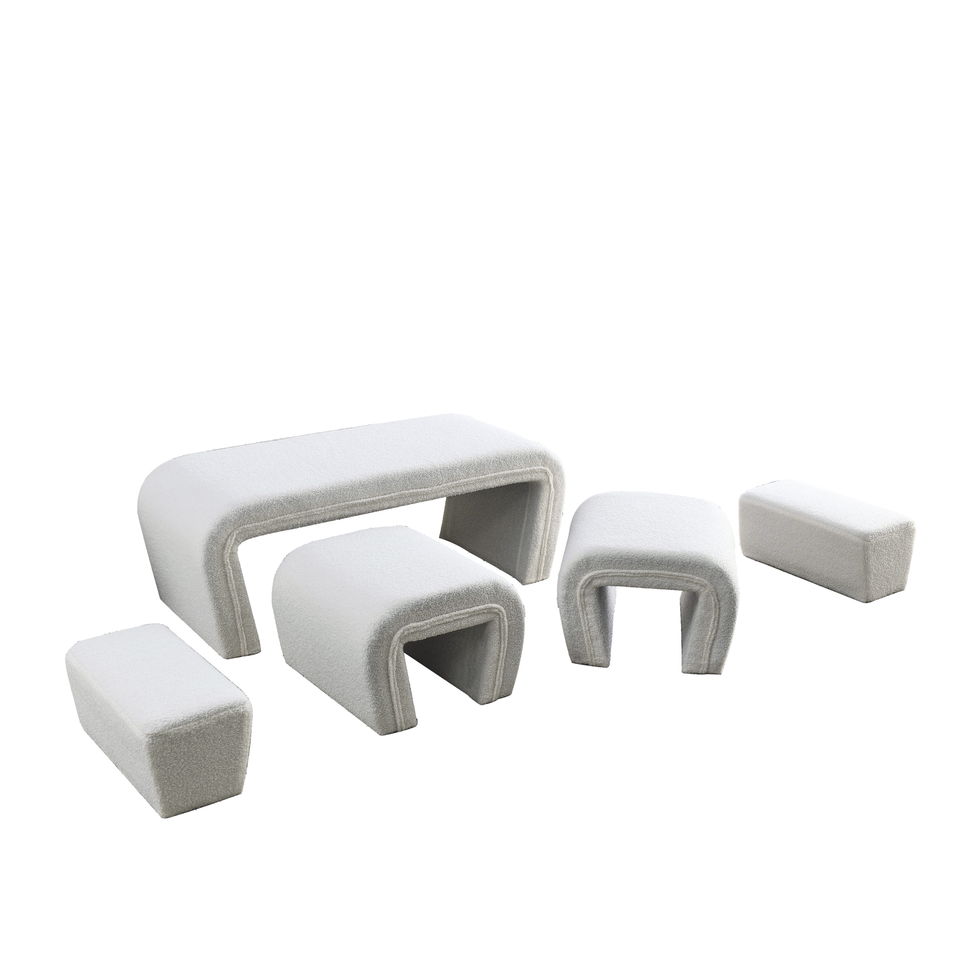 Video Welike 46" W Modern Contemporary Upholstered Nesting Bench, Including Four Nesting Benches, Teddy White Teddy Polyester Fabric