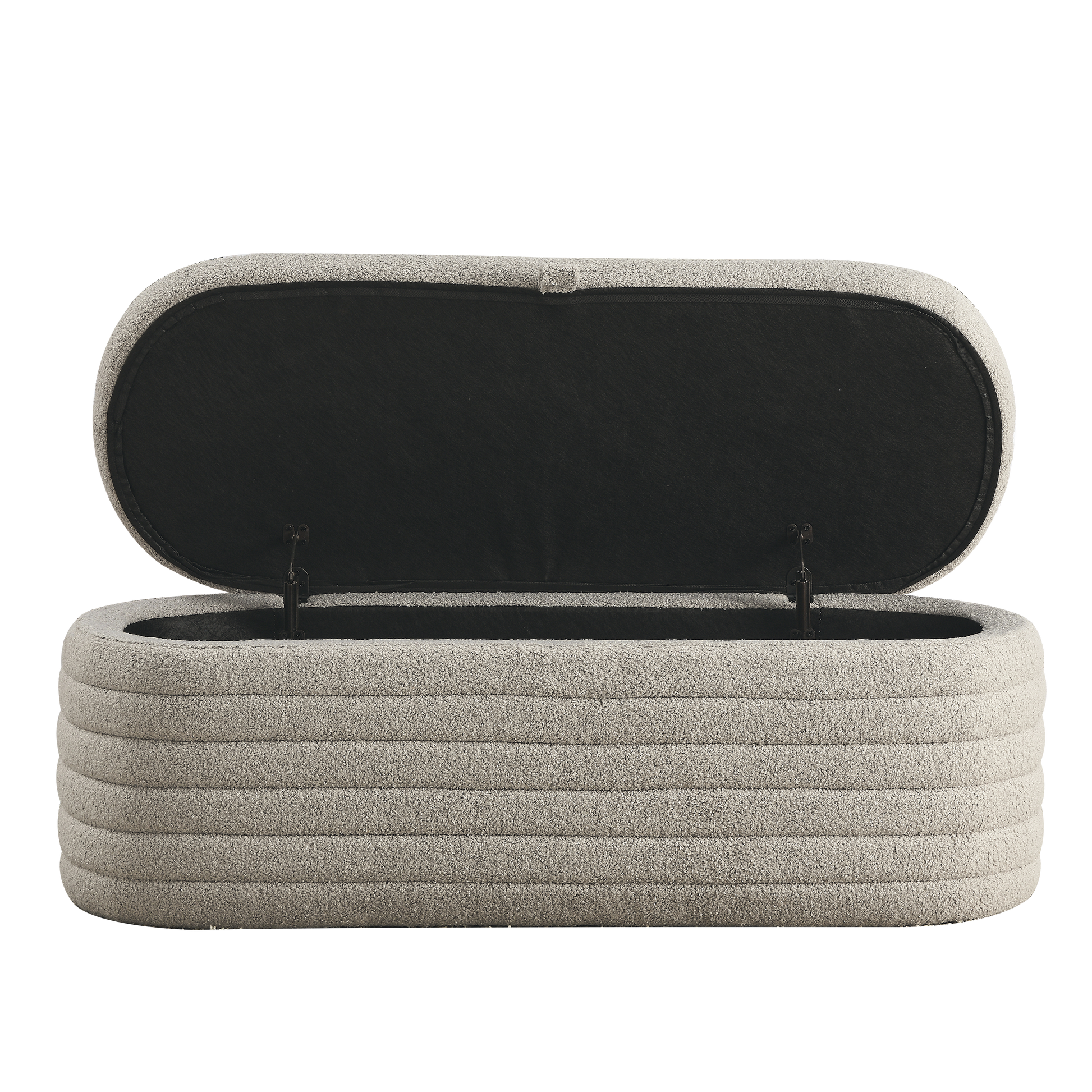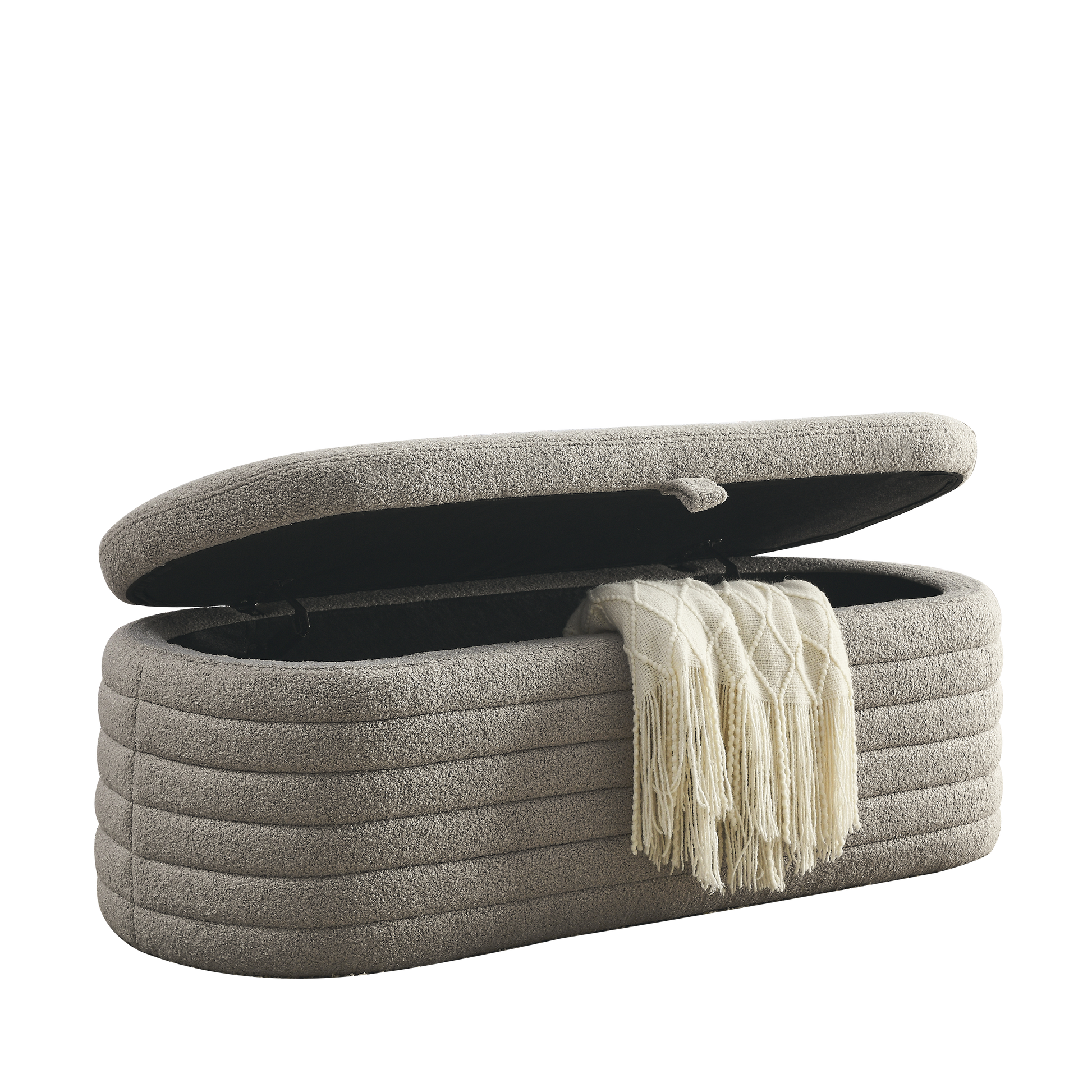 Video Welike Length 45.5 Inchesstorage Ottoman Bench Upholstered Fabric Storage Bench End Of Bed Stool With Safety Hinge For Bedroom, Living Room, Entryway, Grey Teddy. Grey Foam Fabric