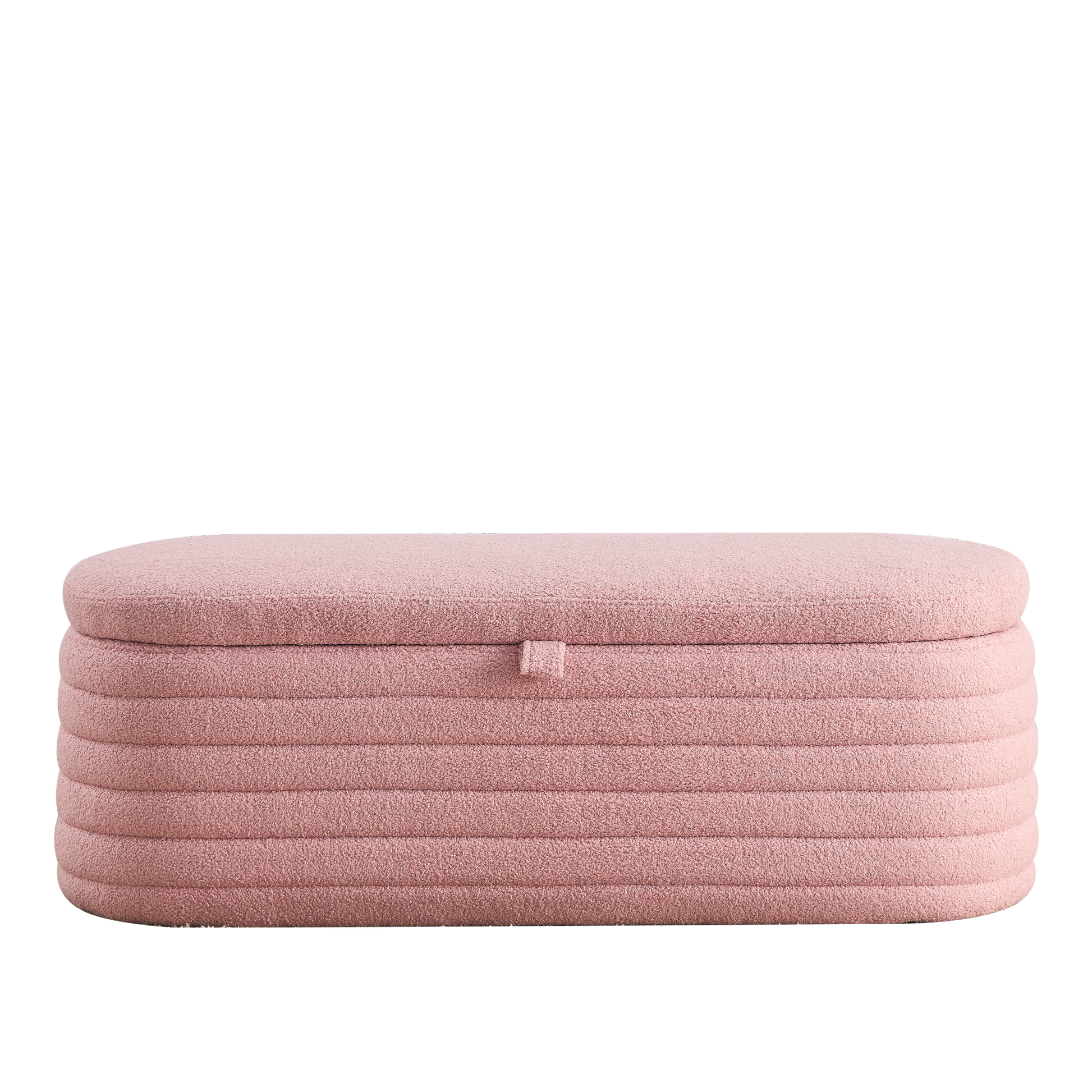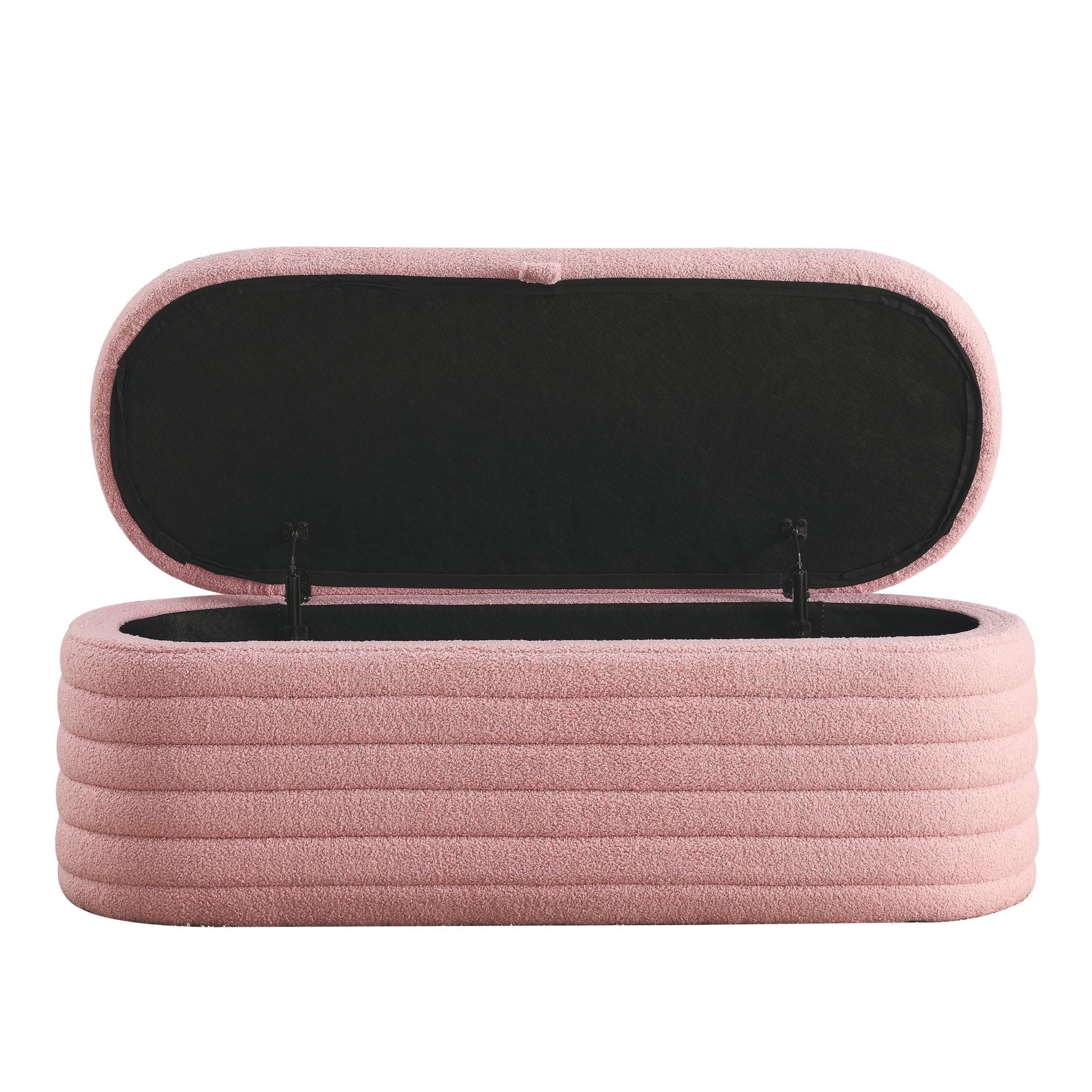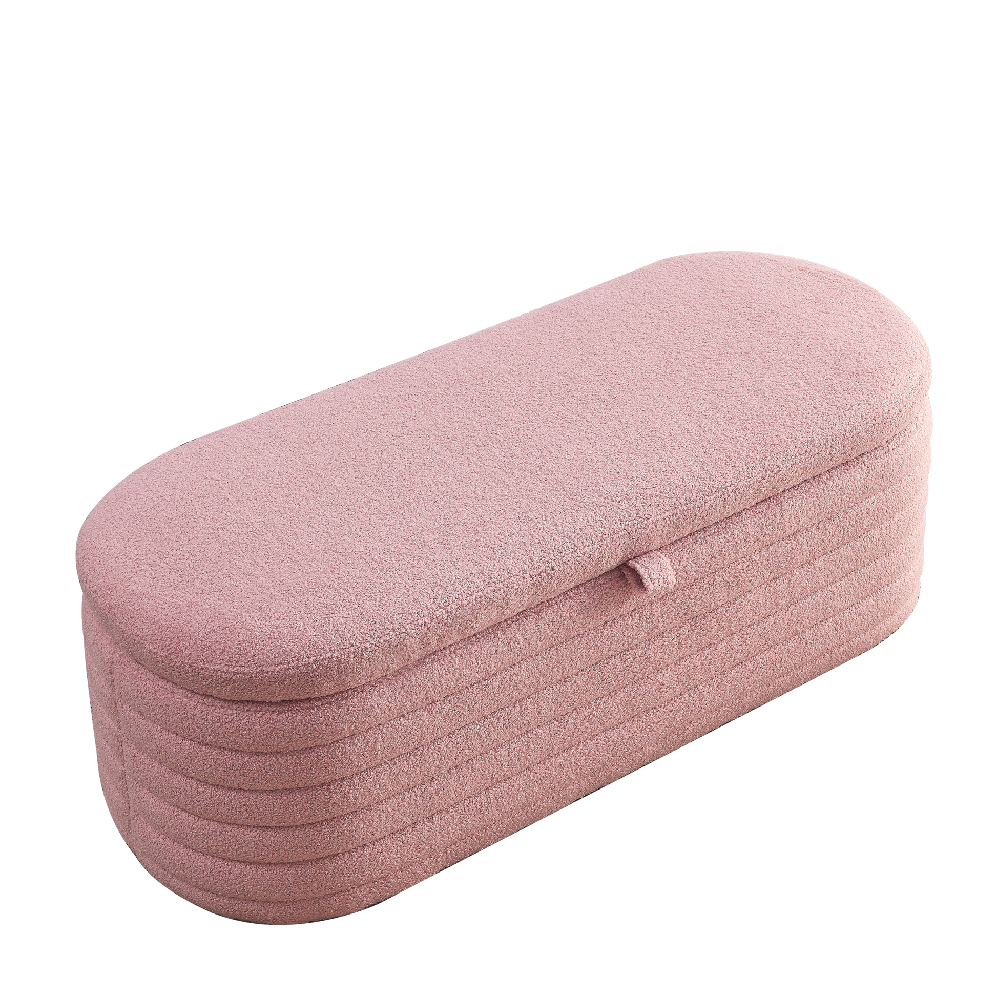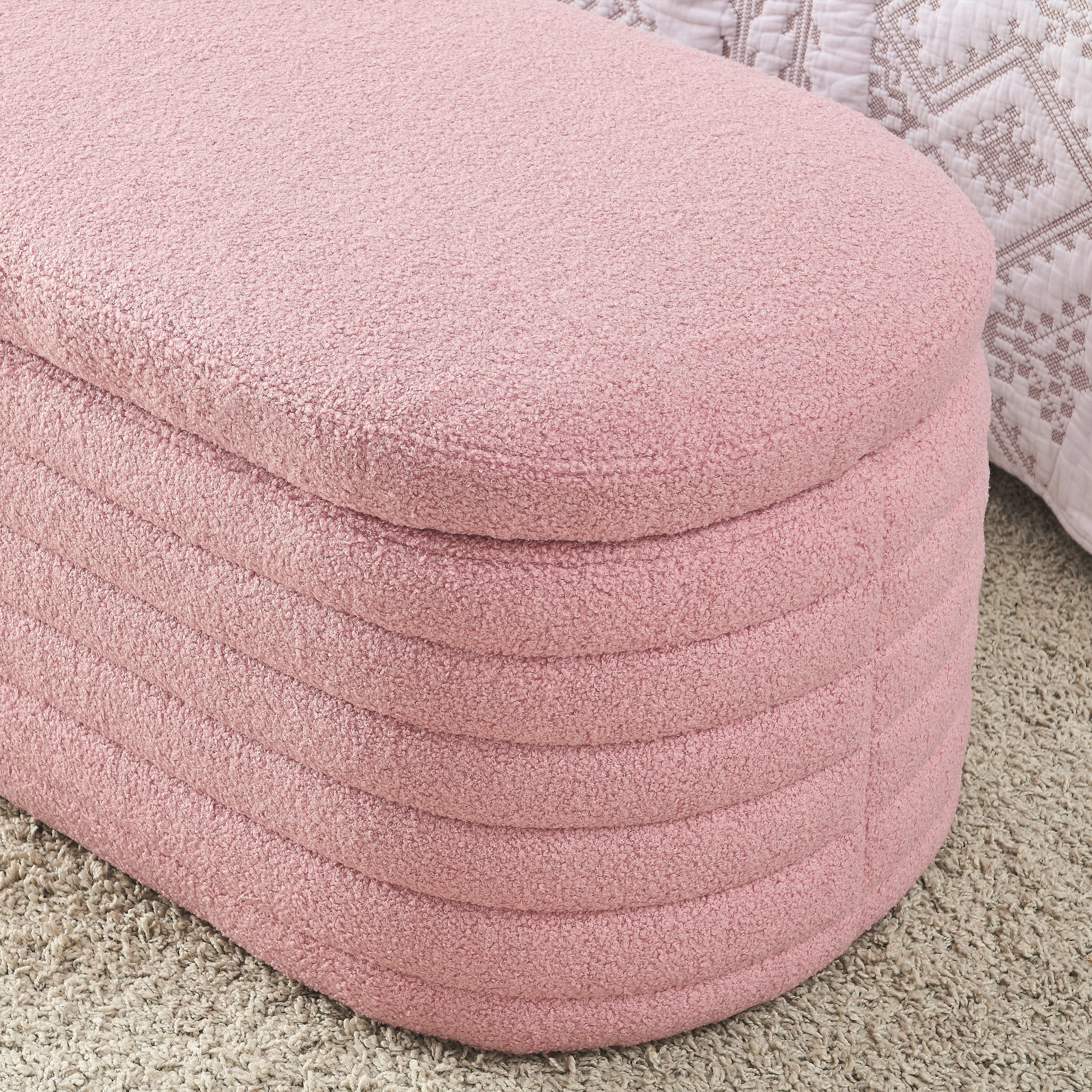 Video Welike Length 45.5 Inchesstorage Ottoman Bench Upholstered Fabric Storage Bench End Of Bed Stool With Safety Hinge For Bedroom, Living Room, Entryway, Pink Teddy. Pink Teddy Foam Fabric