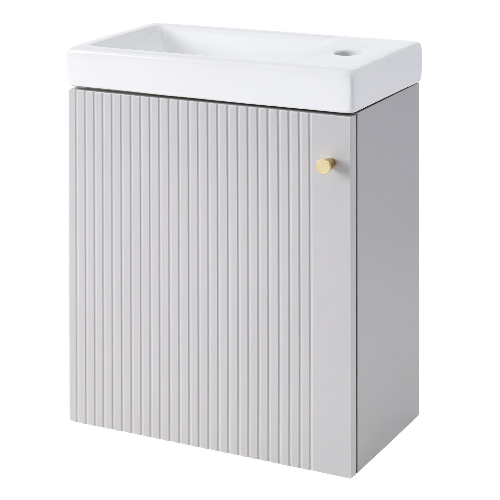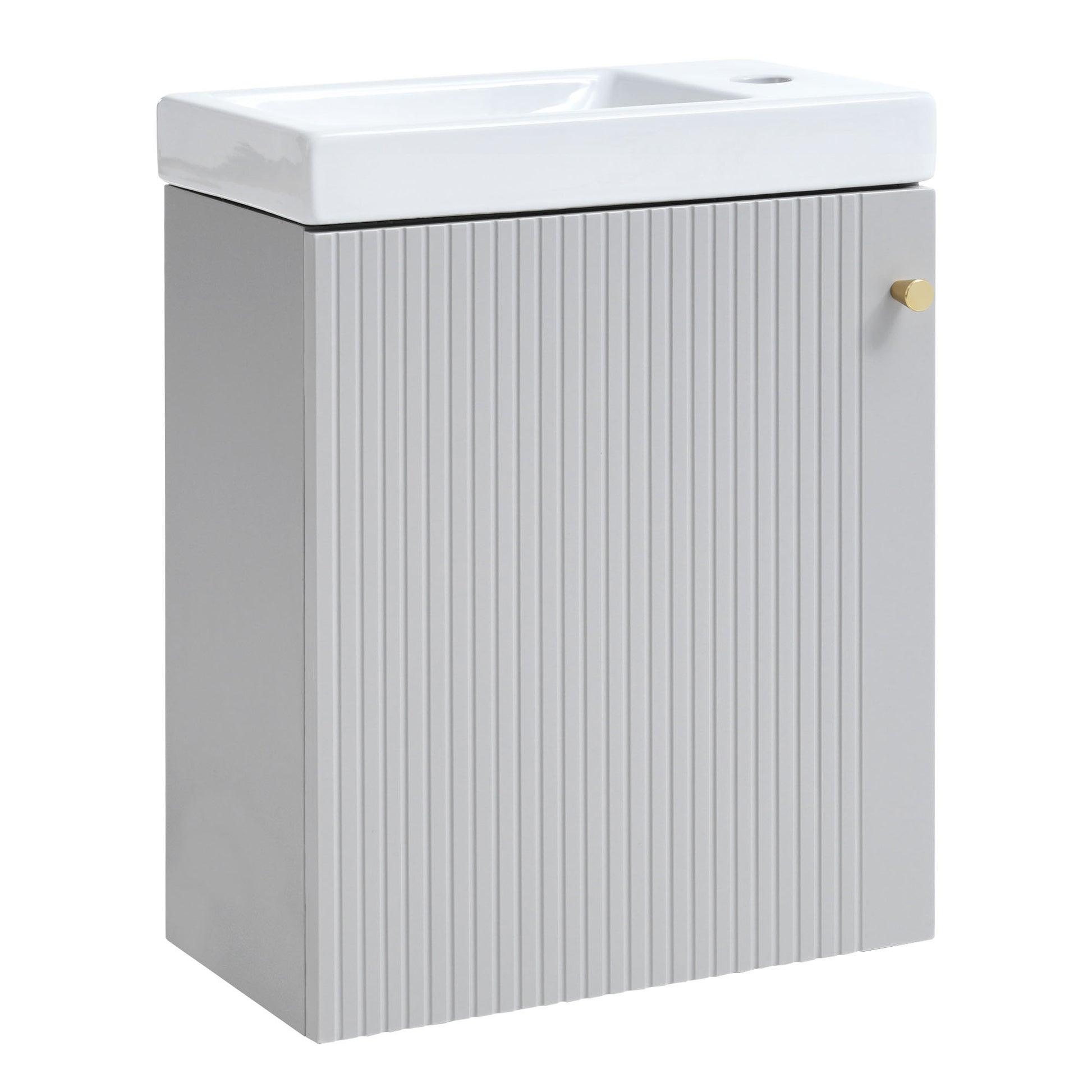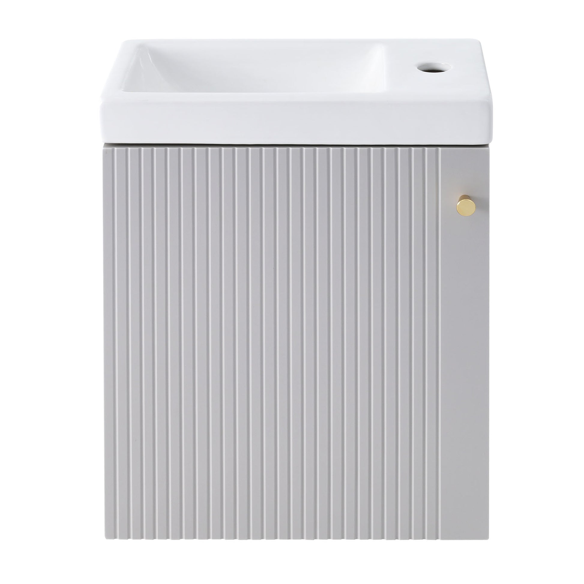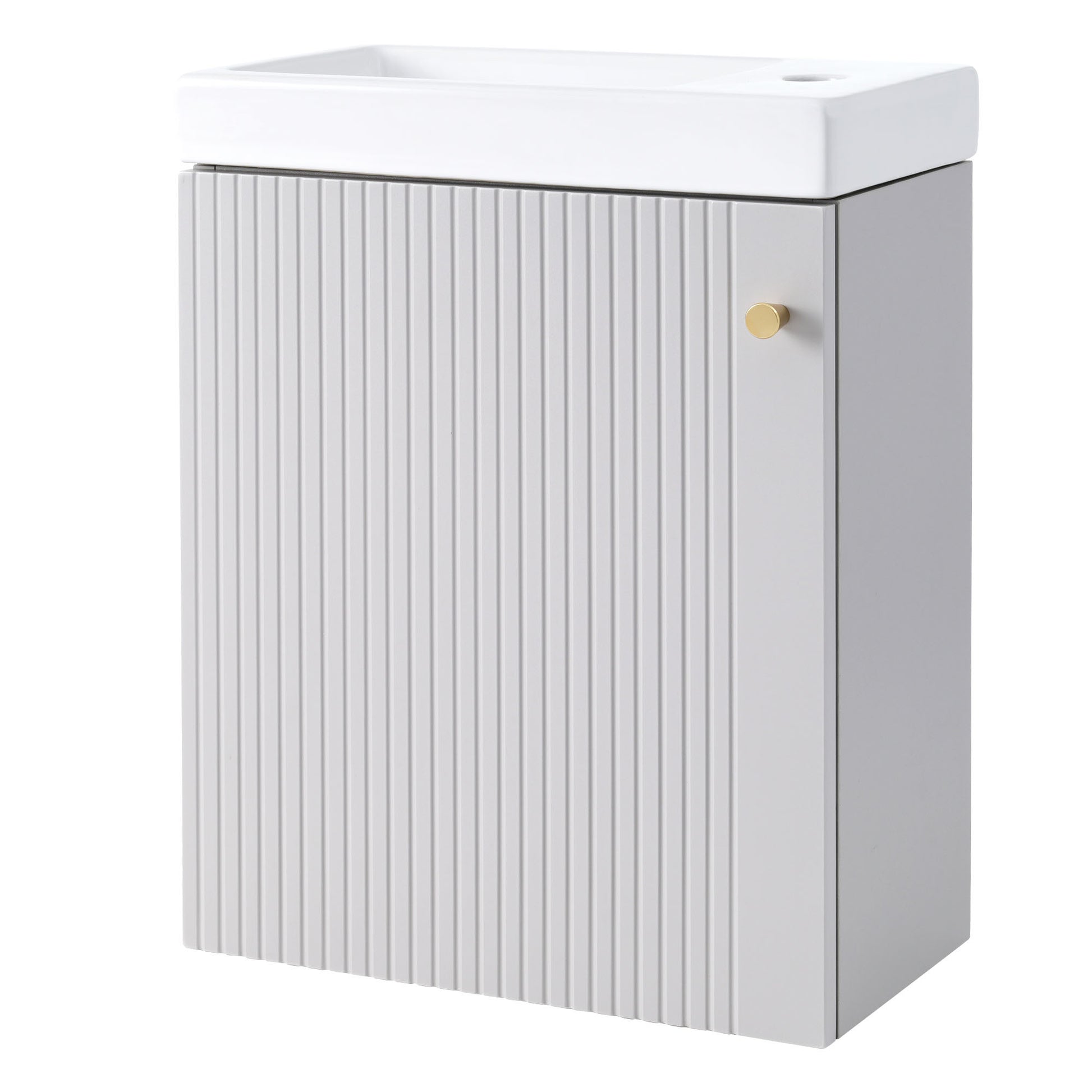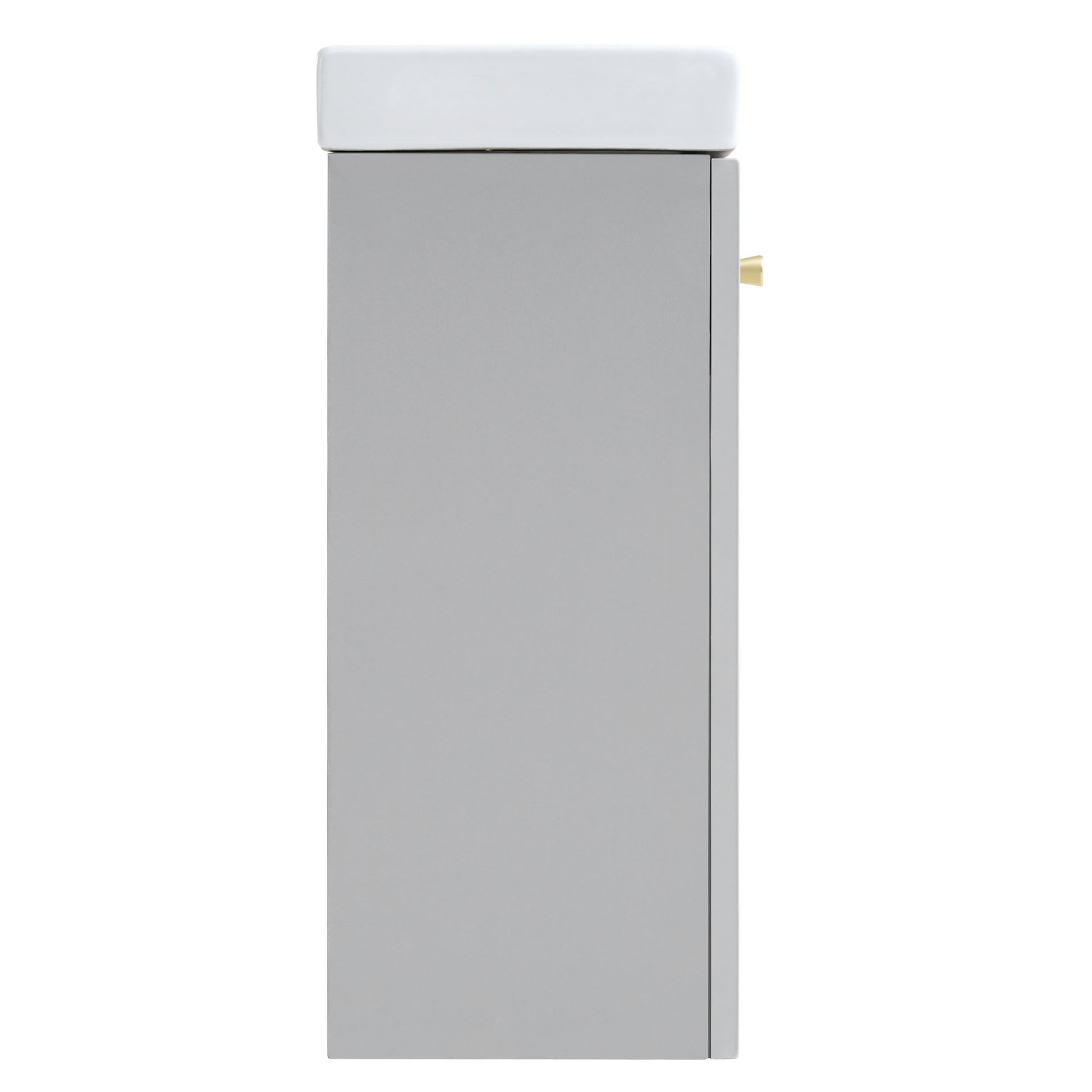 Viedo Contemporary 16" Wall Mounted Bathroom Vanity Combo Cabinet With Ceramic Basin Ideal For Small Bathrooms Grey Mdf