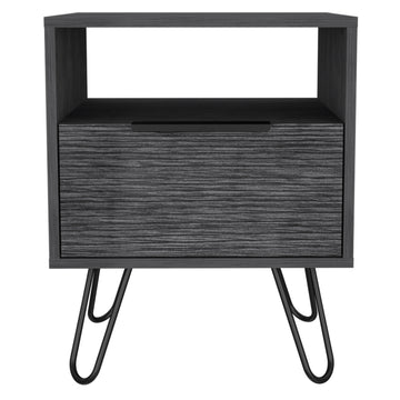 Vienna Nightstand, Shelves, Hairpin Legs Beige Mdf Engineered Wood