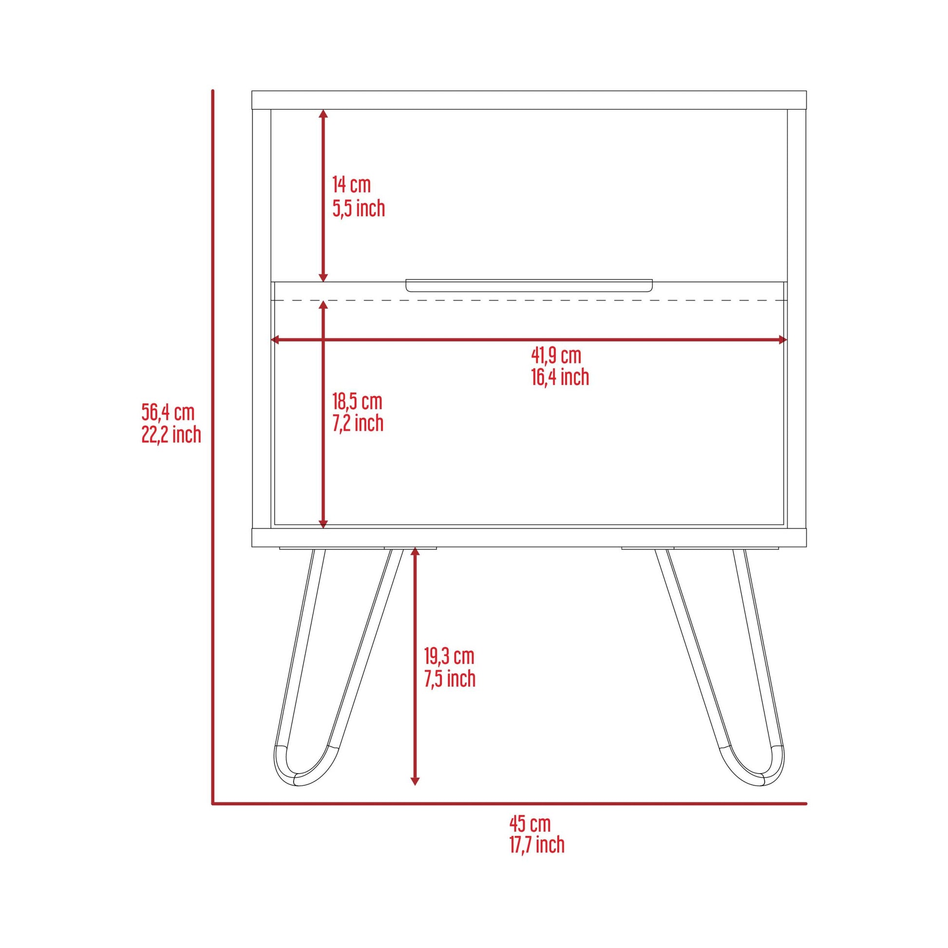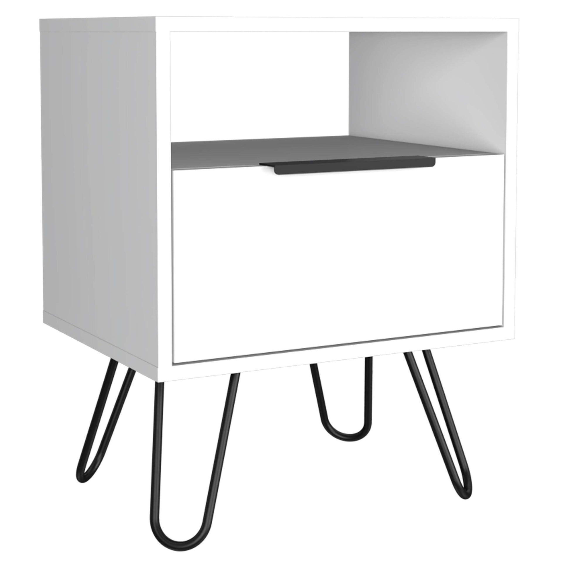 Vienna Nightstand, Shelves, Hairpin Legs White Mdf Engineered Wood
