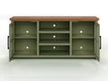 Vineyard 67 Inch Tv Stand Console For Tvs Up To 80 Inches, No Assembly Required, Sage Green And Fruitwood Finish Green Primary Living Space 75 Inches 70 79 Inches Coastal,Farmhouse Poplar 75 Inches Wood