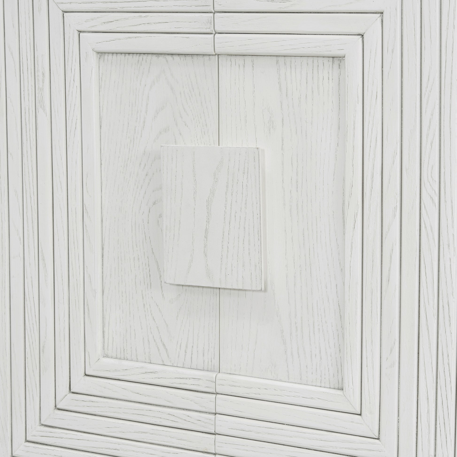 Vintage Distressed 4 Door Sideboard With Adjustable Shelves And Geometric Pattern For Dining Room, Kitchen And Living Room Antique White Antique White Solid Wood Mdf