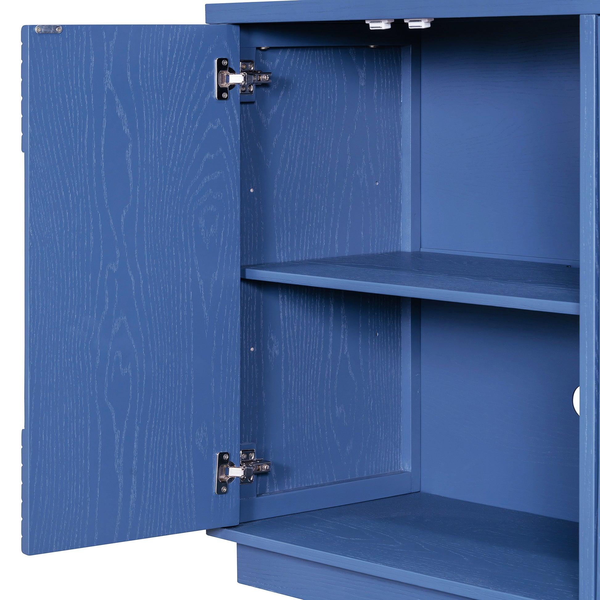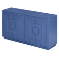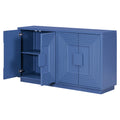 Vintage Distressed 4 Door Sideboard With Adjustable Shelves And Geometric Pattern For Dining Room, Kitchen And Living Room Navy Blue Navy Blue Solid Wood Mdf