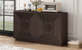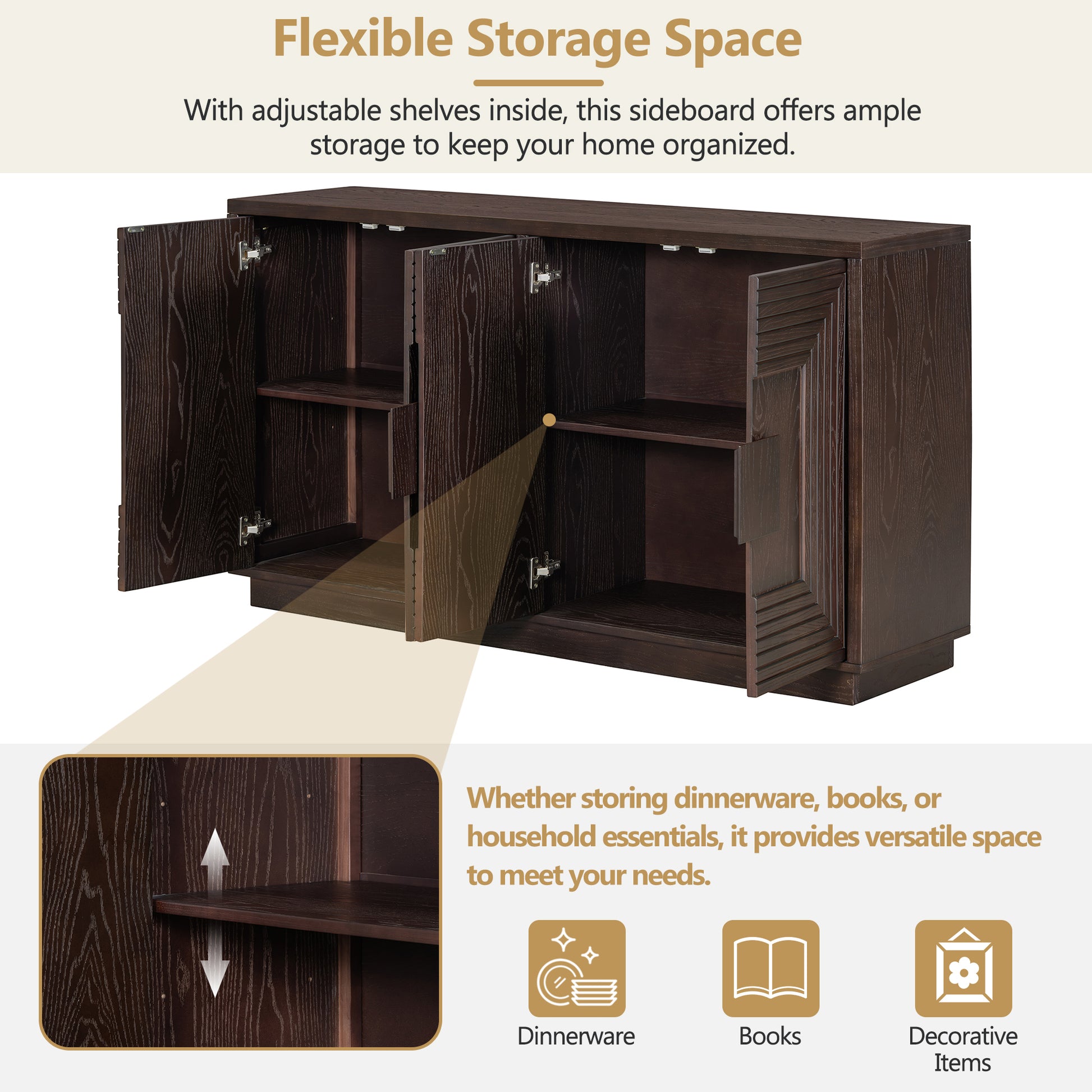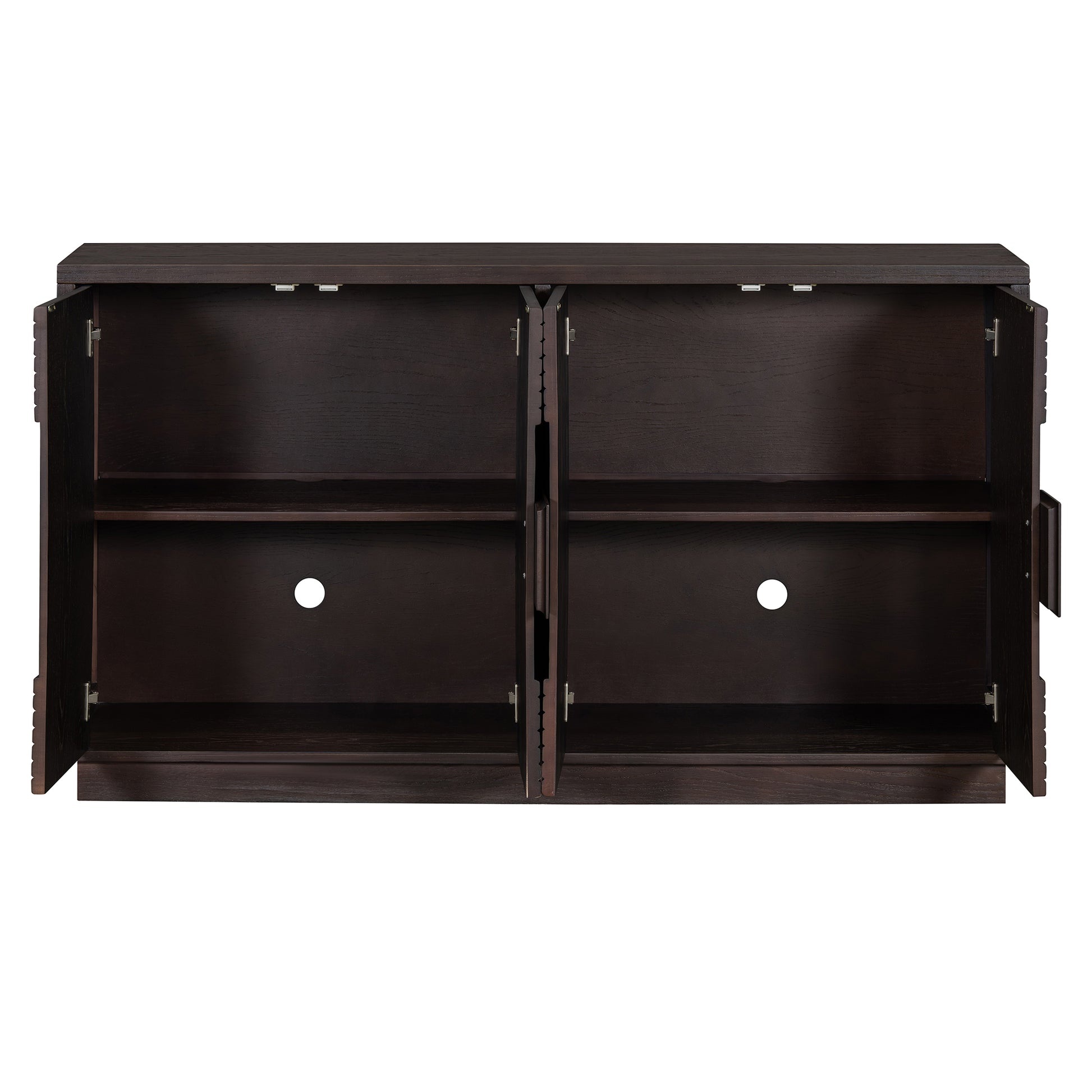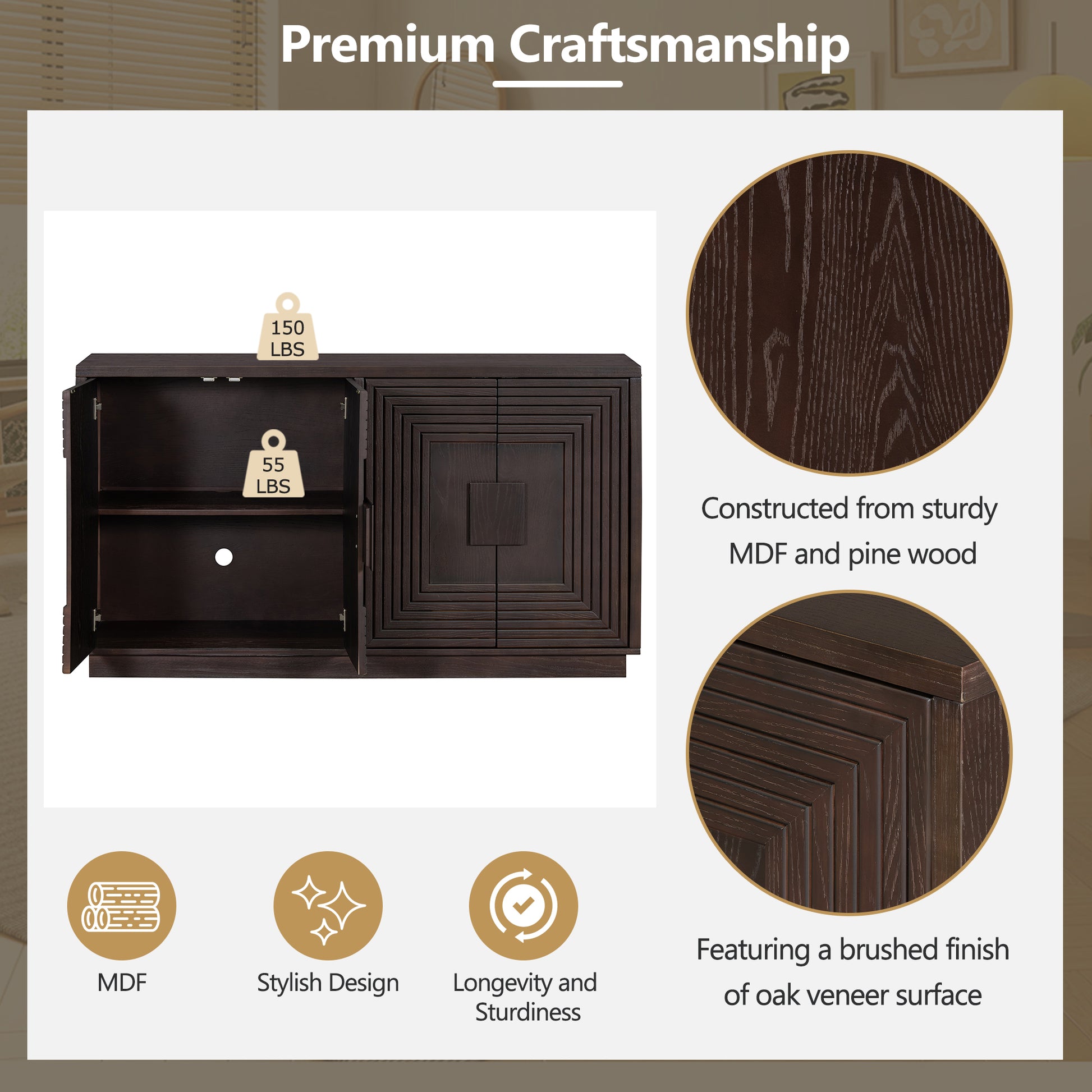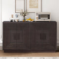 Vintage Distressed 4 Door Sideboard With Adjustable Shelves And Geometric Pattern For Dining Room, Kitchen And Living Room Espresso Espresso Solid Wood Mdf
