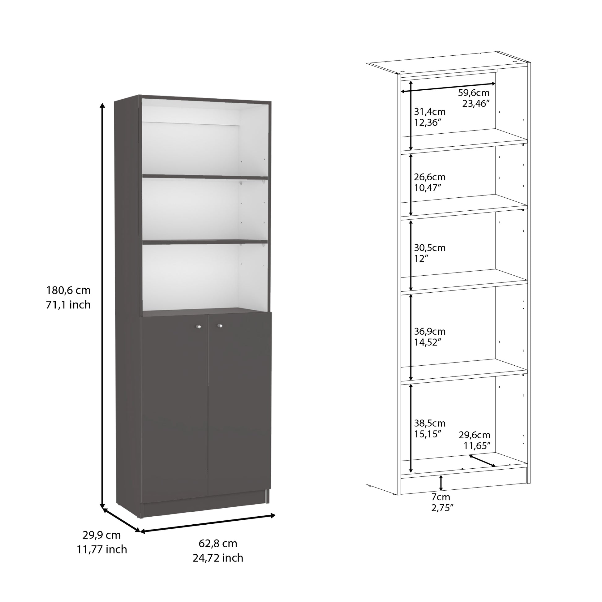 Vinton 2 Door Bookcase With Upper Shelves, Matt Gray White Multicolor Particle Board Pine
