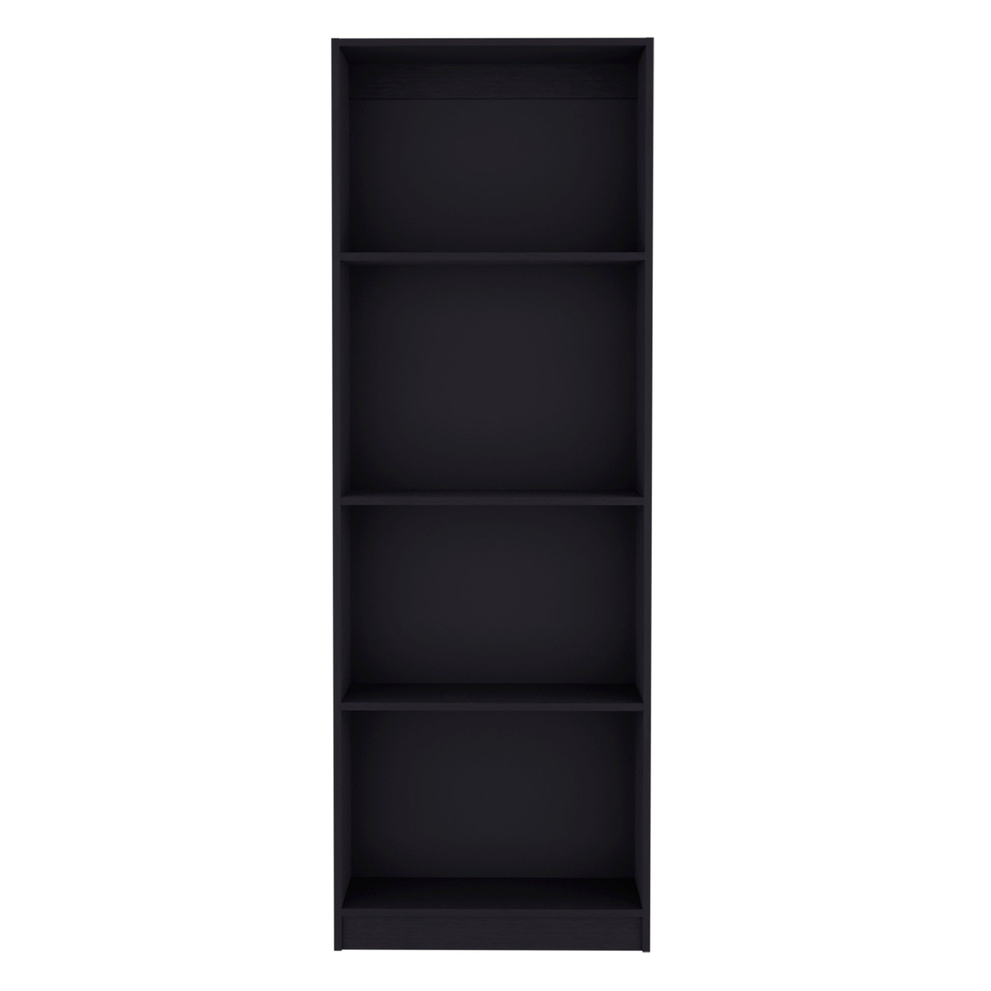 Vinton Bookcase With Spacious Tier Shelving Design, Black Black Particle Board Pine