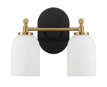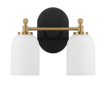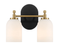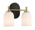 Vortex Two Lights Vanity In Traditional Style For Over Bathroom Mirror Wall Sconce 12.25"W 10.125"H 5.5"E With White Frosted Glass Black,Gold,White Glass,Metal