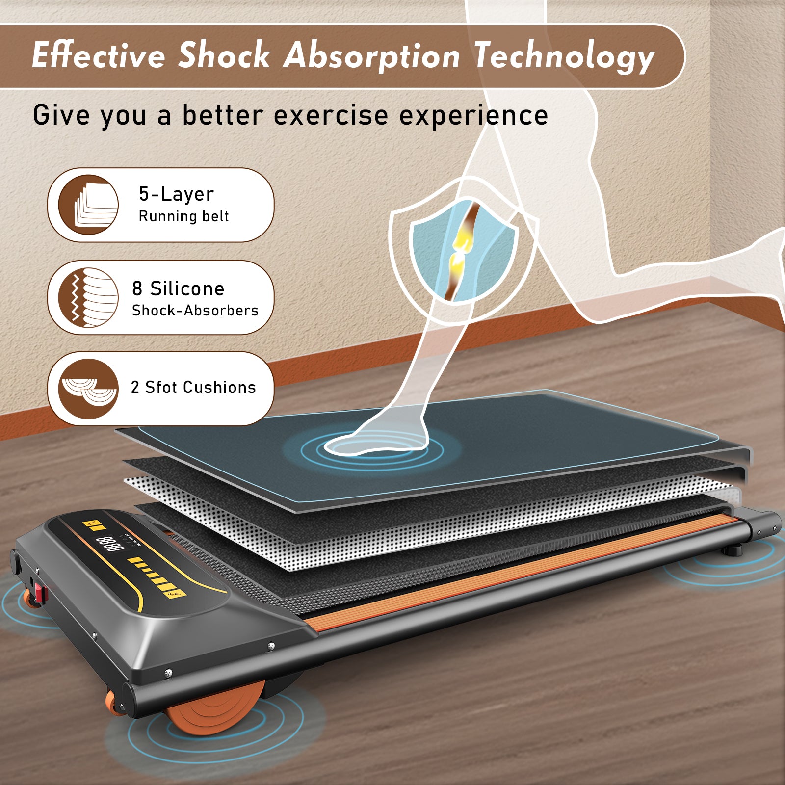 Walking Pad Running Machine Walking Machine For Home Under Desk Treadmill With Led Display And 12 Preset Programs 2.25Hp Portable Treadmill Jogging Machine For Office Small Space Black Orange Steel