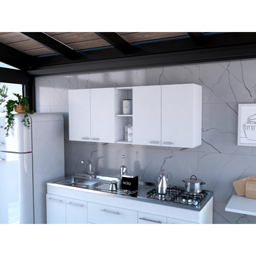 Wall Cabinet 24" H, Four Doors, Two Open Storage Shelves, Two Internal Shelves, Internal Dish And Glass Organizer, White White Particle Board Particle Board