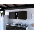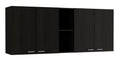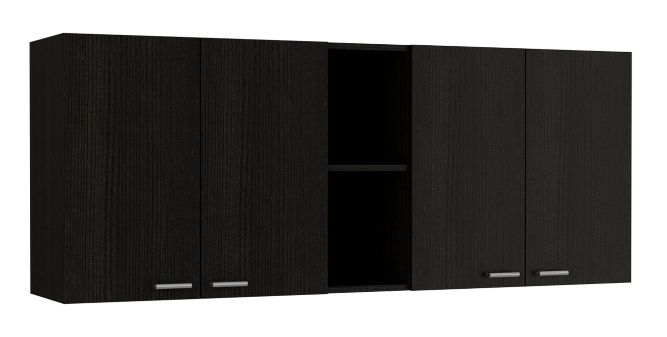 Wall Cabinet 24" H, Four Doors, Two Open Storage Shelves, Two Internal Shelves, Internal Dish And Glass Organizer, Black Black Particle Board Particle Board