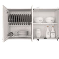 Wall Cabinet 24" H, Four Doors, With Two Internal Shelves And Internal Plate And Glass Organizer, Two Storage Shelves With Two Glass Doors, White White Particle Board Particle Board
