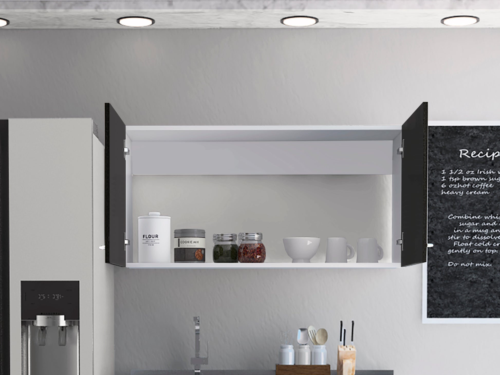 Wall Cabinet Toran, Two Shelves, Double Door, Black Wengue Finish Black Particle Board