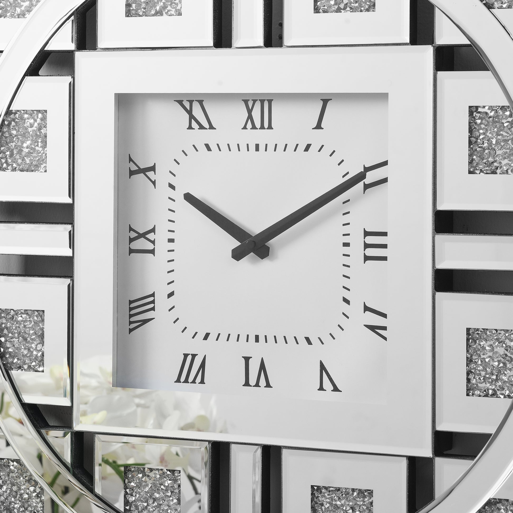 Wall Clock In Mirrored & Faux Gemstones Silver American Design Acrylic Mdf Glass
