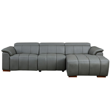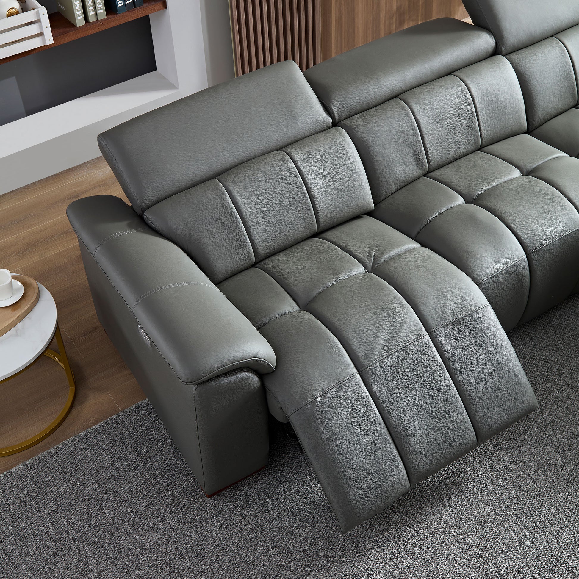 Wall Hugger Reclining Sofa Modern Electric Control Genuine Leather L Shaped Couch,Lounge Seat Theater Seating Furniture With Usb Port, Sofa With Headrest & Footrest For Living Room,Apartment,Office Dark Grey Genuine Leather 3 Seat