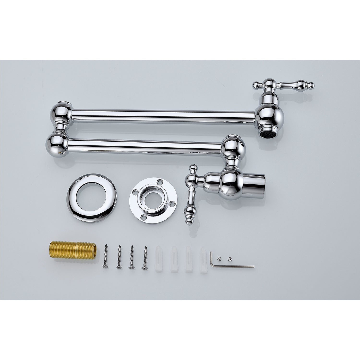 Wall Mount Folding Kitchen Pot Filler Faucet Chrome Brass