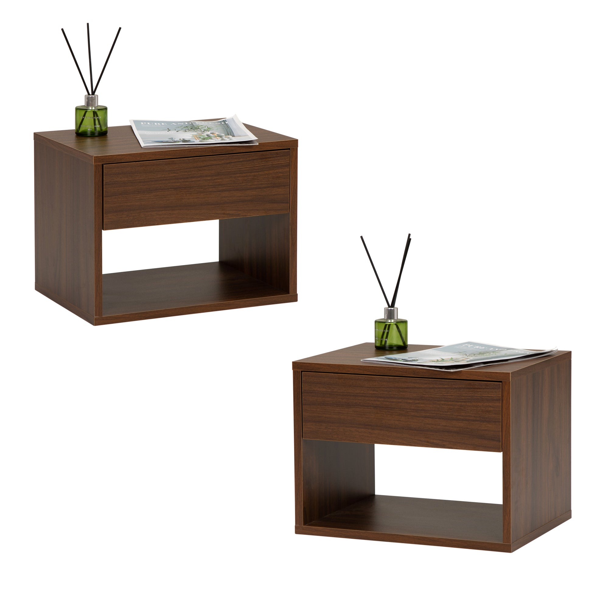 Wall Mounted Bedside Table Set Of Two Walnut Color Walnut Particle Board