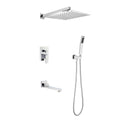 Wall Mounted Shower System Combo With Hand Shower, 12 Inch Shower Head And Tub Spout Chrome Brass