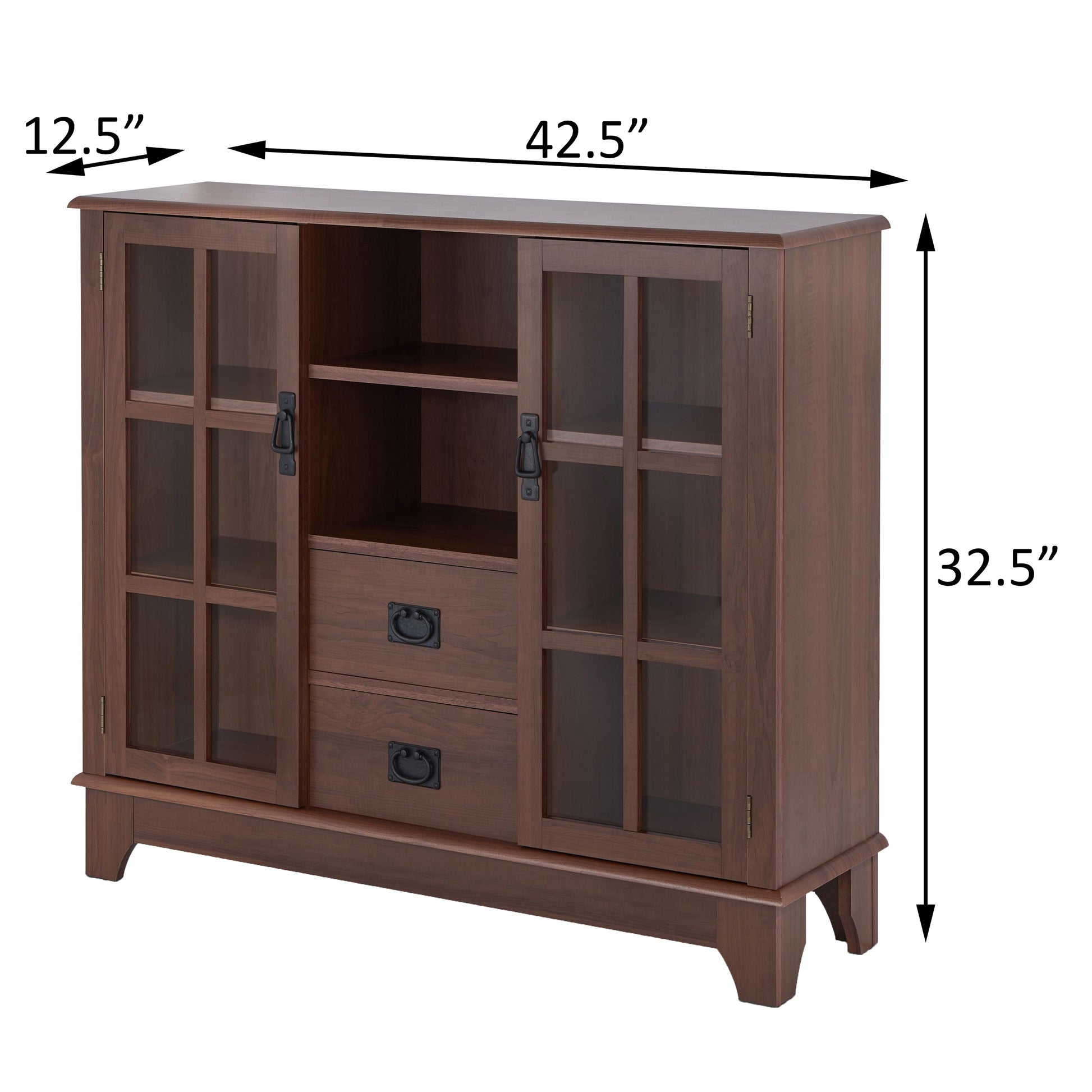 Walnut 2 Door Server With 2 Drawer Walnut Dining Room Open Storage Wood Glass