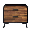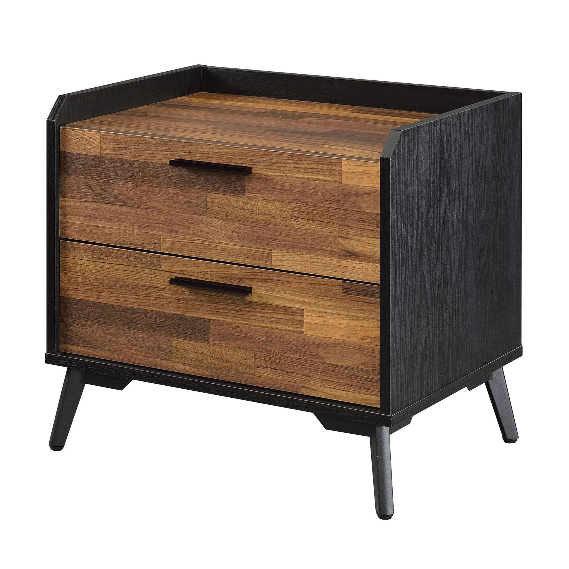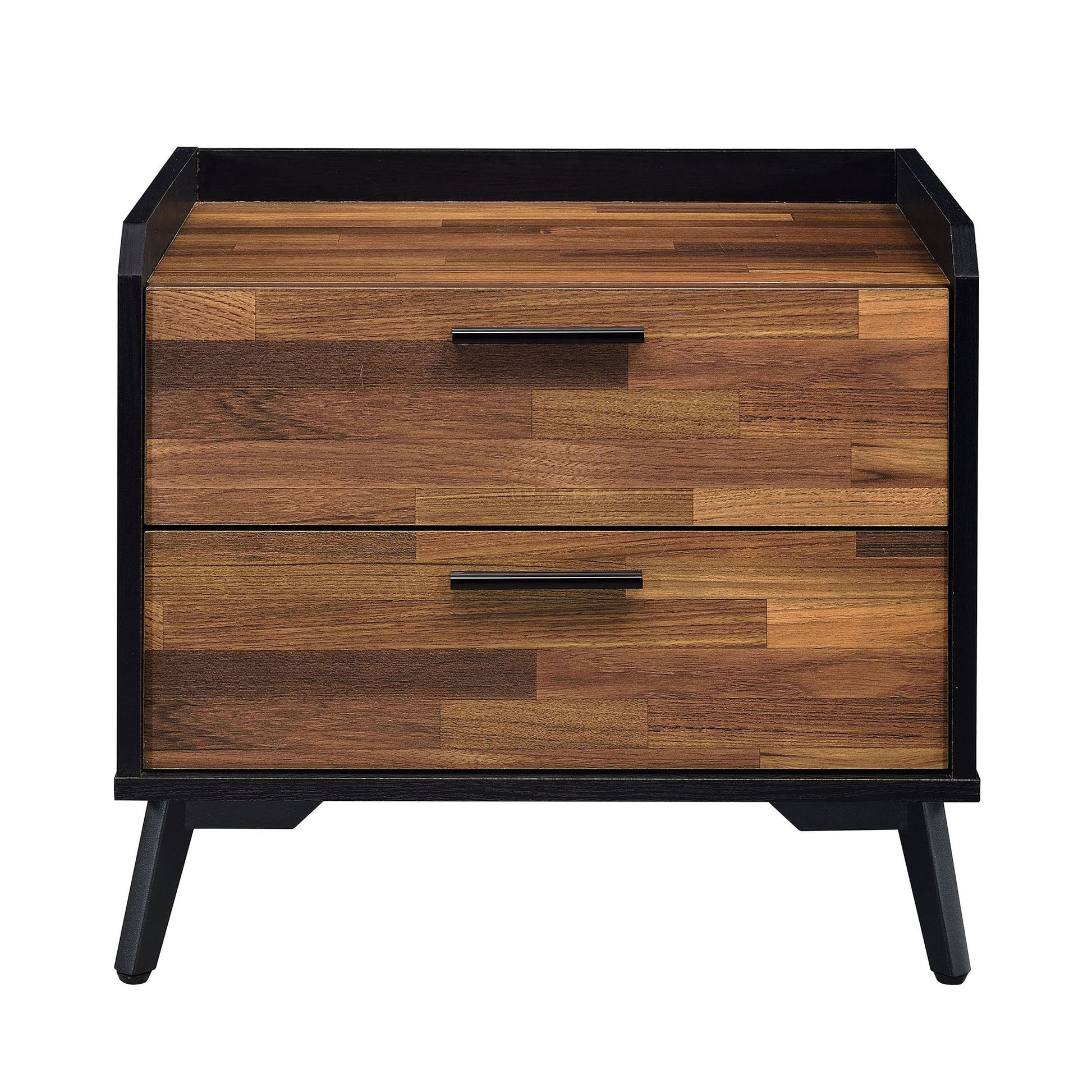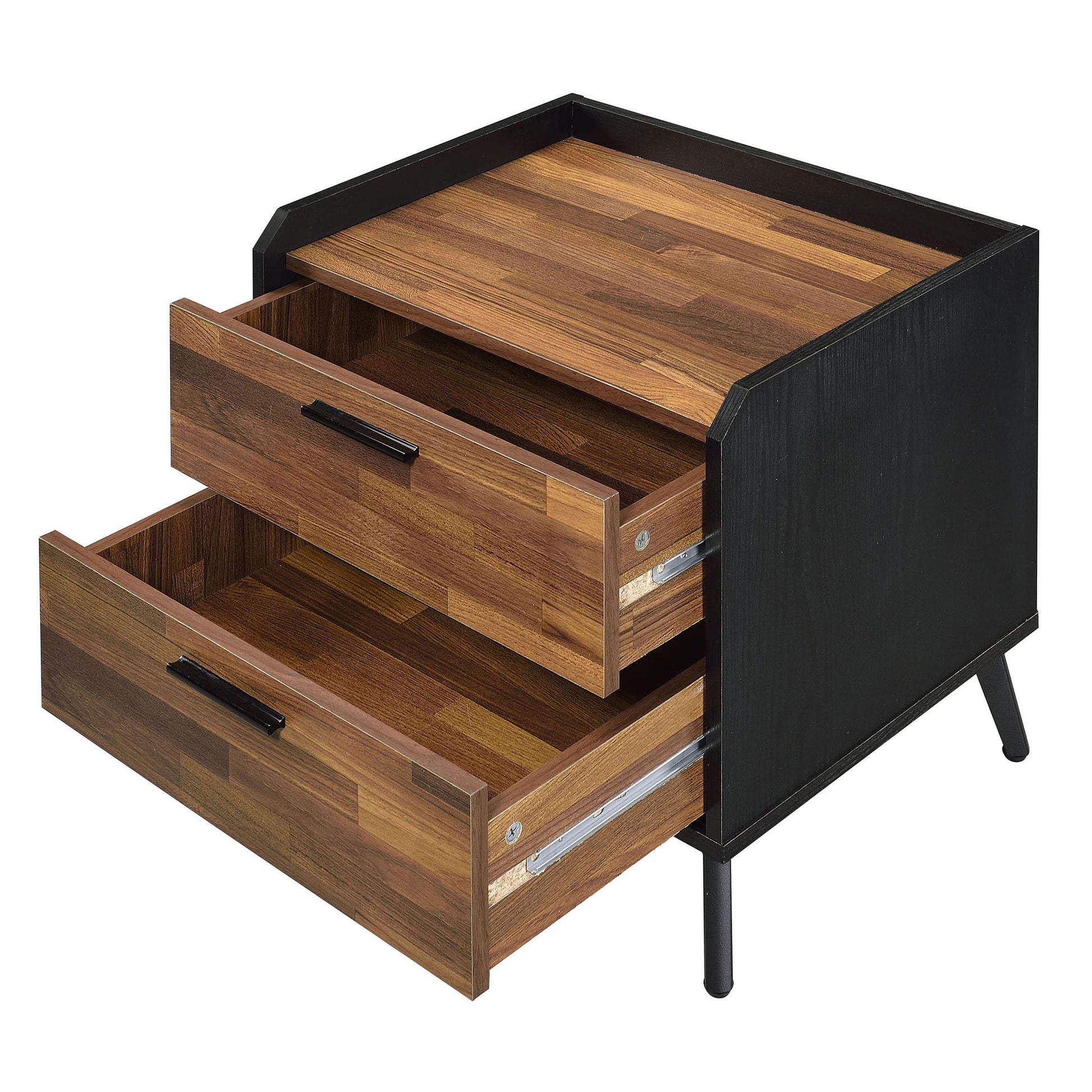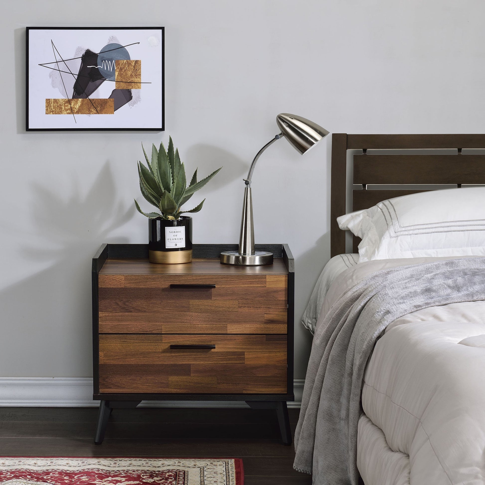 Walnut And Black Nightstand With Metal Sled Base Walnut Black 2 Drawers Bedroom Rectangle Drawers Walnut Wood Metal