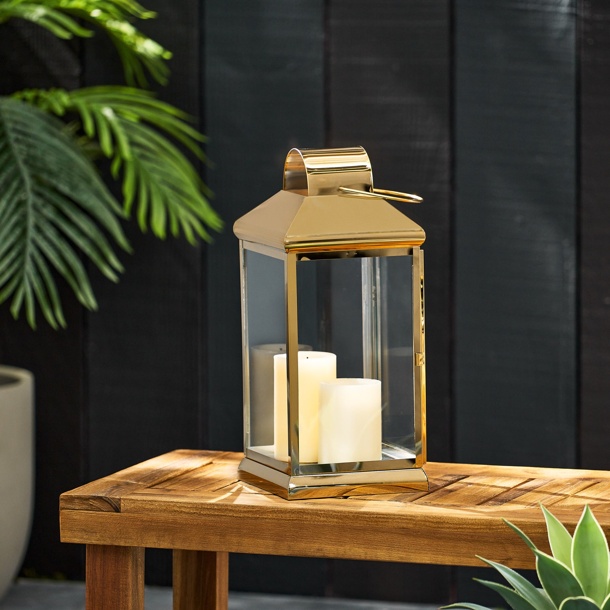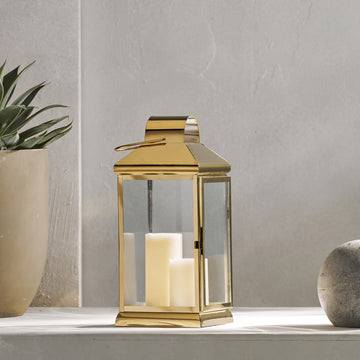 Walter 16"H Stainless Steel Lantern Gold Stainless Steel
