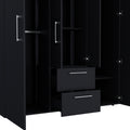 Wardrobe, Deluxe Armoire With Multiple Storage Options And Metal Accents, Black Black Particle Board Particle Board