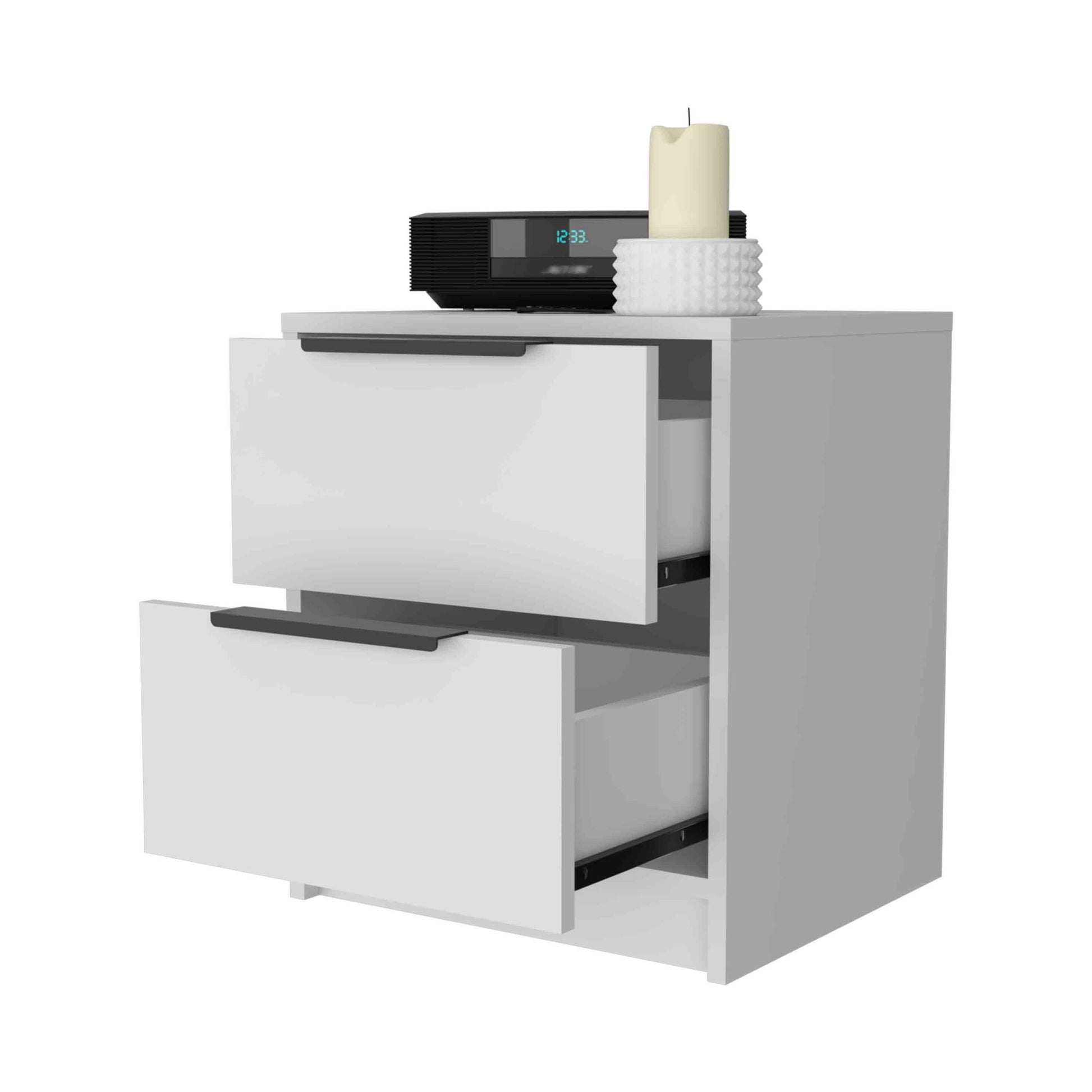 Washington Nightstand, Two Large Drawers White 2 Drawers Bedside Cabinet Bedroom Contemporary Storage Pine Melamine Melamine