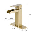 Waterfall Bathroom Faucet Brushed Gold Single Handle Bathroom Sink Faucets 1 Or 3 Hole Solid Vanity Faucet With Deck Plate & Overflow Pop Up Drain Brushed Gold One Brushed Gold Deck Mounted Bathroom Gold Stainless Steel