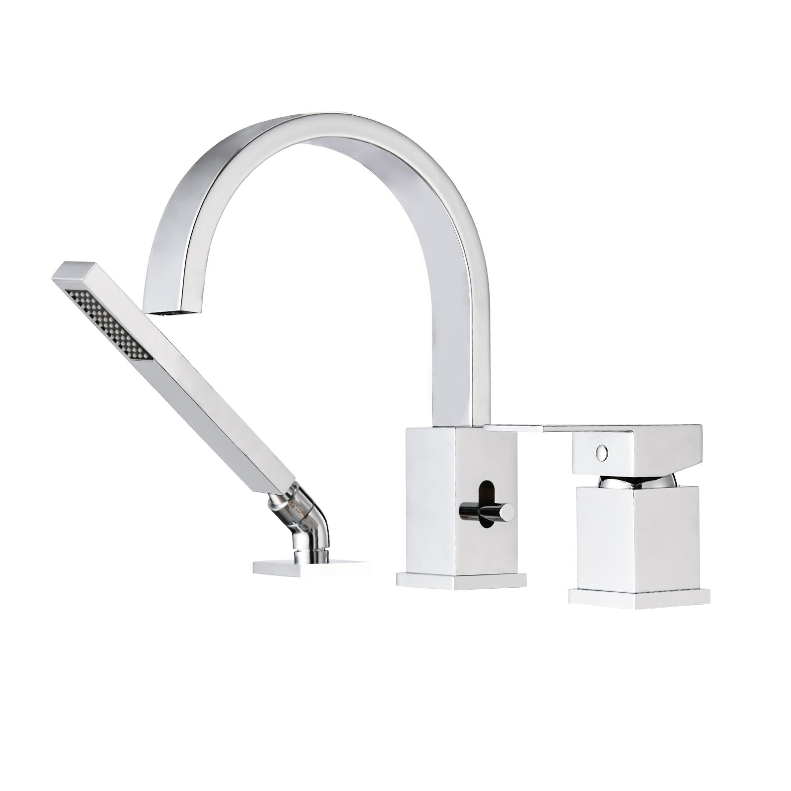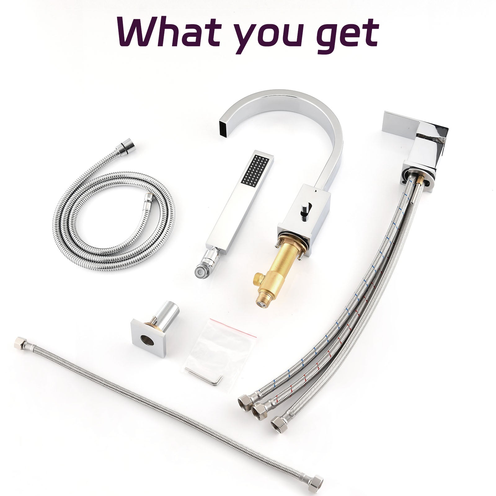 Waterfall Bathtub Faucet With Sprayer, 3 Hole Roman Tub Filler With Hand Shower Deck Mount Waterfall Tub Spout Set Chrome Stainless Steel
